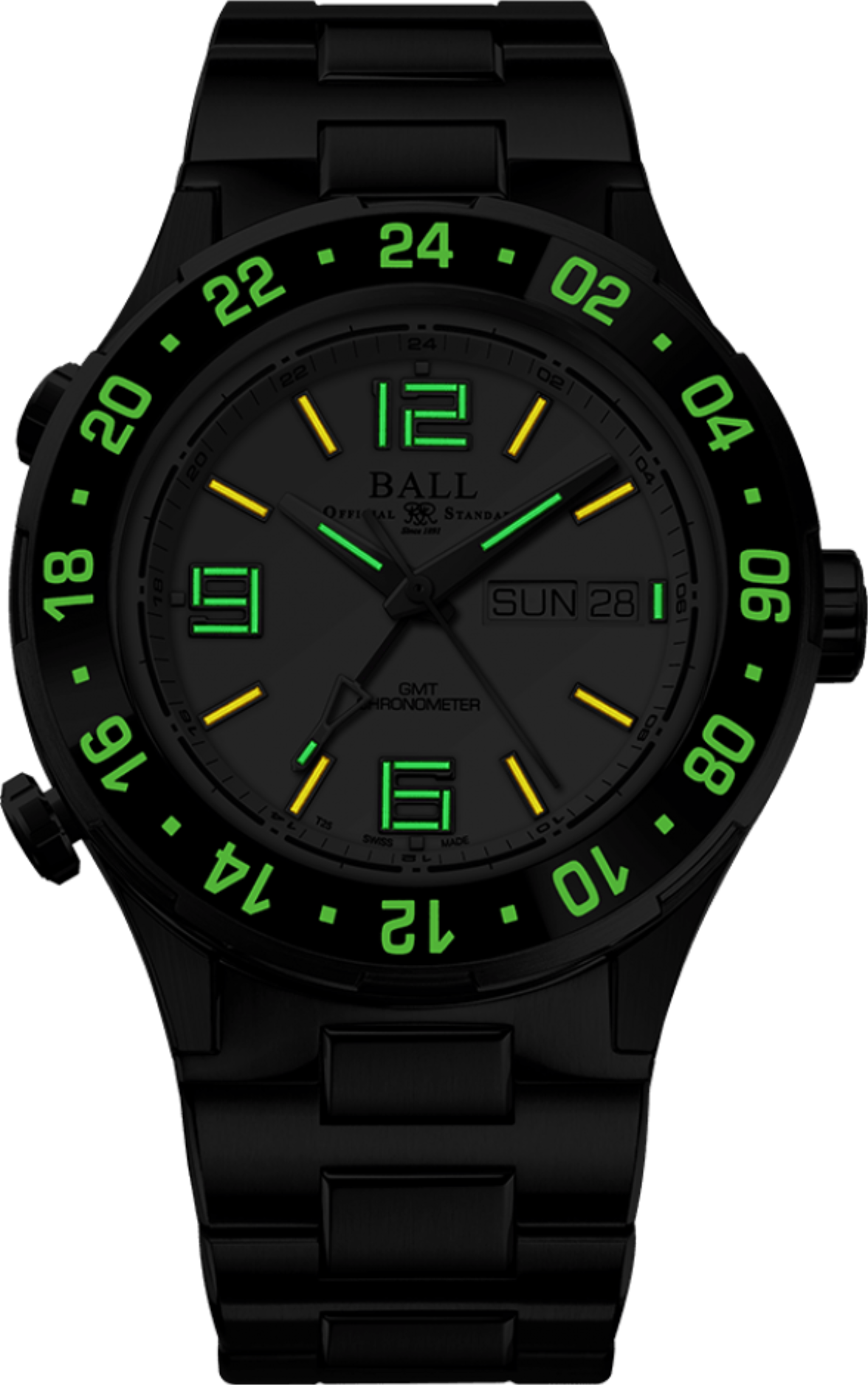 Funkce:Čas, datum, den v týdnu, GMT - druhé světové pásmo, obousměrně otočná keramická luminisceční luneta (číslice/indexy na lunetě v noci svítí - SuperLuminova), strojek Ball calibre RR1203 - C (základ swiss Eta 2824) - rezerva chodu 38 hodin, automatický nátah (pohybem ruky) + ruční nátah (hodinky lze natáhnout i mechanicky - ručně), 28.800 polokmitů setrvačky za hodinu, COSC certifikát přesnosti strojku - přesnost chodu 0 - 3 vteřiny/den, 25 kamenových uložení, šroubovací vodotěsná korunka, odolnost vůči magnetickému poli 4 800 A/m (takto označené hodinky už se označují jako antimagnetické, odolávají běžnému magnetickému poli), odolnost nárazu 5 000 Gs = možný pád hodinek až z jednoho metru bez poškození strojku (hodinky jsou tímto zároveň odolné podobným nárazům identické síly), články náramku jsou spojovány šroubky (velmi kvalitní spojení), zadní víčko pouzdra hodinek je prosklené pro náhled na strojek. V číselníku jsou indexy a ručičky plněny mikroampulkami se svítícím plynem, který má schopnost svítit nonstop 25 let. Díky tomu uvidíte kdykoliv a kdekoliv ve tmě, jaký je správný čas