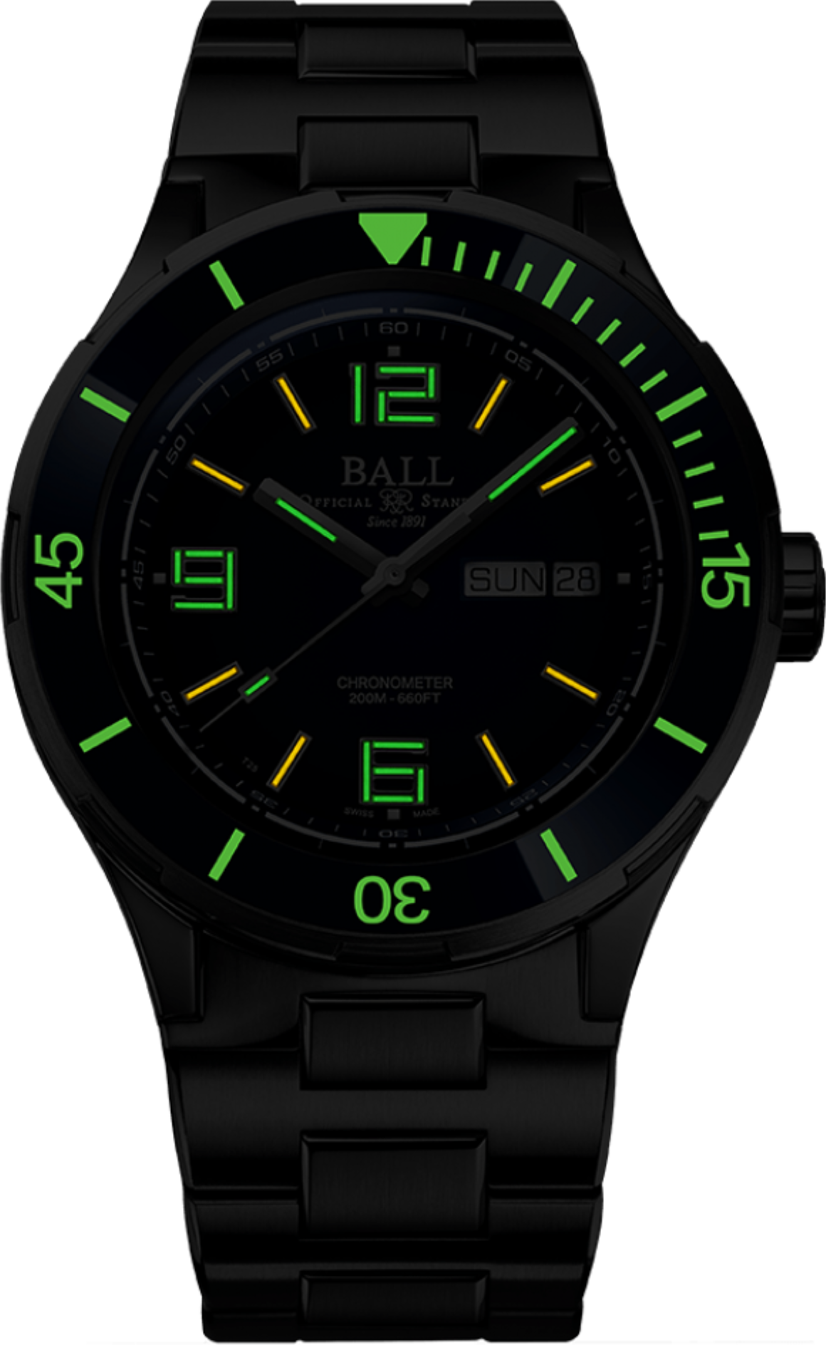 Funkce:Čas, datum, den v týdnu, jednosměrně otočná keramická luminisceční luneta (číslice/indexy na lunetě v noci svítí - SuperLuminova), strojek Ball calibre RR1102-C (základ swiss ETA 2836-2) - rezerva chodu 38 hodin, automatický nátah (pohybem ruky) + ruční nátah (hodinky lze natáhnout i mechanicky - ručně), 28.800 polokmitů setrvačky za hodinu, COSC certifikát přesnosti strojku - přesnost chodu 0 - 3 vteřiny/den, 25 kamenových uložení, šroubovací vodotěsná korunka, odolnost vůči magnetickému poli 4 800 A/m (takto označené hodinky už se označují jako antimagnetické, odolávají běžnému magnetickému poli), odolnost nárazu 5 000 Gs = možný pád hodinek až z jednoho metru bez poškození strojku (hodinky jsou tímto zároveň odolné podobným nárazům identické síly), zadní víčko pouzdra hodinek je prosklené pro náhled na strojek. V číselníku jsou indexy a ručičky plněny mikroampulkami se svítícím plynem, který má schopnost svítit nonstop 25 let. Díky tomu uvidíte kdykoliv a kdekoliv ve tmě, jaký je správný čas