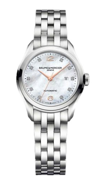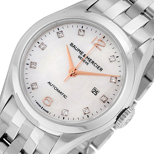 Funkce:Čas, datum, strojek swiss ETA 2671- rezerva chodu 38 - 42 hodin, kmity setrvačky 28.800/h = diference 3 - 4 vteřiny denně, průhledné zadní víčko pro náhled na strojek, číselník zdobí 10 diamantů o ryzosti 0,06 karátů. Firma Baume et Mercier Vám vyrobí na zakázku kožený řemínek ke každým hodinkám své produkce, který si vyberete z palety jejich vzorníku (modrý, modrý s bílým prošitím, modrý s modrým prošitím, modrý s béžovým prošitím a takto i další barvy kůže - viz.obrázek ve fotkách hodinek). Baume et Mercier je natolik prestižní firma, že opraví každé hodinky, které vyrobili od počátku svého vzniku, tedy od roku 1830. Baume & Mercier si vyrábí svoje vlastní hodinářské oleje, které vynikají svojí dlouhou životností - díky tomu je prodloužena doba pravidelného celkového servisu(vyčištění a namazání strojku) na 10 let.
