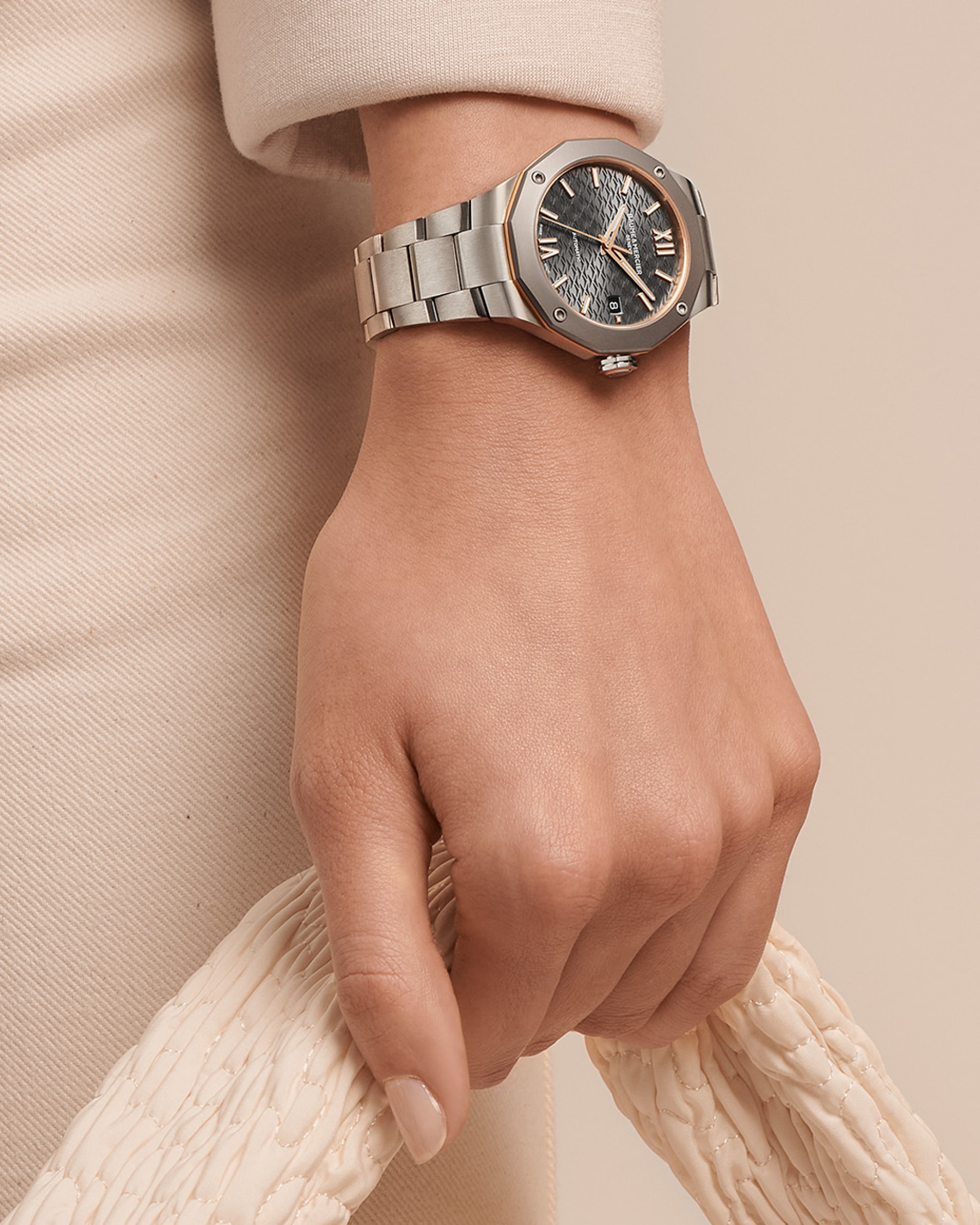 Dva nové unisex modely Riviera s průměrem 36 mm s ocelovým páskem vytáhnou v roce 2022 všechny své triumfy. První je ženská verze Riviera Automatic 10660 v oceli s titanovou lunetou. Zde je v naprosto univerzálním průměru 36 mm pro ženy, které hledají hodinky s charakterem v bimateriálovém duchu. Odpovídá letos představenému novému pánskému modelu s ocelovým pouzdrem, titanovou lunetou, prstencem z pozlaceného PVD, „švýcarským“ samonatahovacím strojkem a integrovaným ocelovým páskem. Asertivní a přitom decentní kousek.