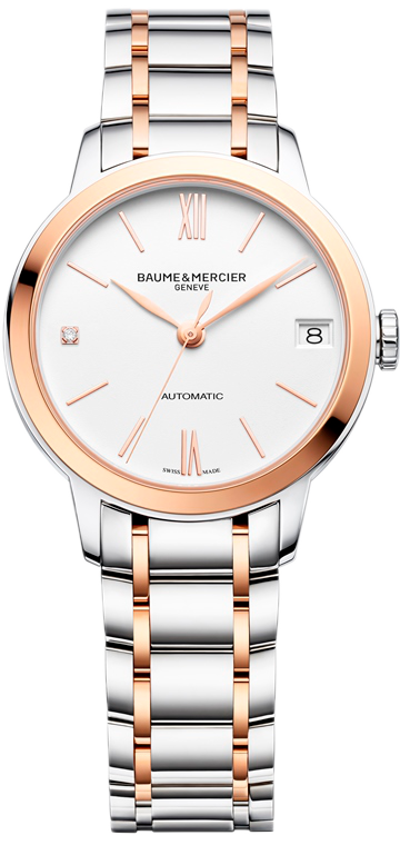Funkce:Čas, datum, strojek Swiss ETA 2892-A2 - 21 kamenů, rezerva chodu 42 hodin, kmity setrvačky 28.800/h = přesnost chodu 3 - 4 vteřiny denně, průhledné zadní víčko pro náhled na strojek, číselník zdobí diamant o váze 0,01 karátů. Baume & Mercier si vyrábí svoje vlastní hodinářské oleje, které vynikají svojí dlouhou životností - díky tomu je prodloužena doba pravidelného celkového servisu (vyčištění a namazání strojku) na 10 let.. Baume & Mercier si vyrábí svoje vlastní hodinářské oleje, které vynikají svojí dlouhou životností - díky tomu je prodloužena doba pravidelného celkového servisu (vyčištění a namazání strojku) na 10 let.. Firma Baume et Mercier Vám vyrobí na zakázku kožený řemínek ke každým hodinkám své produkce, který si vyberete z palety jejich vzorníku (modrý, modrý s bílým prošitím, modrý s modrým prošitím, modrý s béžovým prošitím a takto i další barvy kůže - viz.obrázek ve fotkách hodinek). Baume et Mercier je natolik prestižní firma, že opraví každé hodinky, které vyrobili od počátku svého vzniku, tedy od roku 1830. Baume & Mercier si vyrábí svoje vlastní hodinářské oleje, které vynikají svojí dlouhou životností - díky tomu je prodloužena doba pravidelného celkového servisu(vyčištění a namazání strojku) na 10 let.