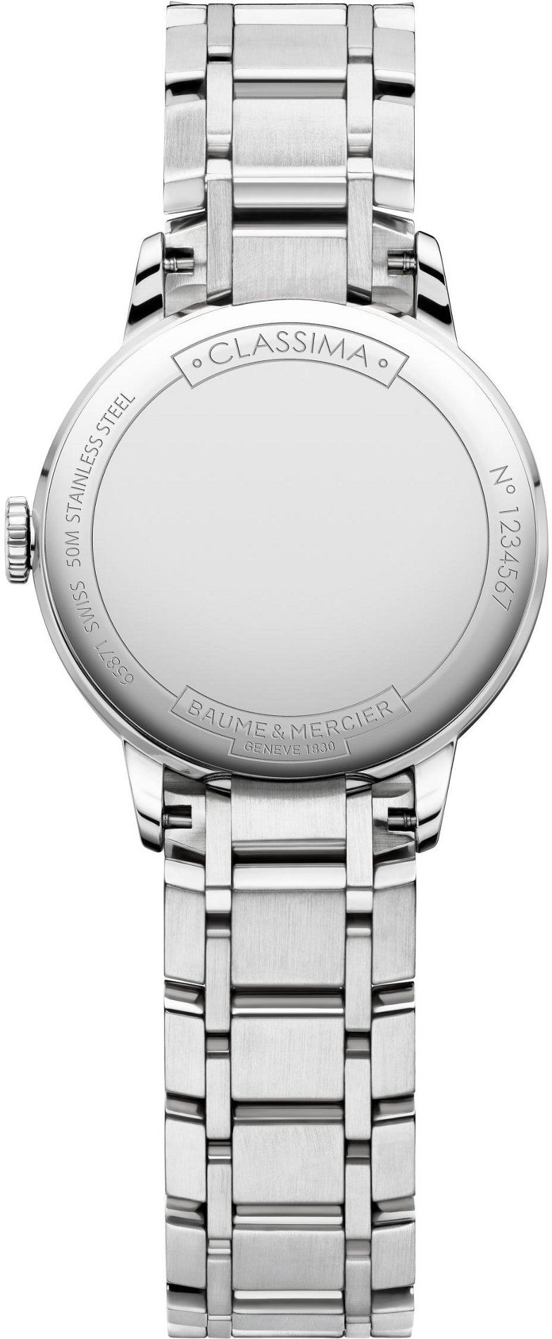 Funkce:Čas, datum, quartzový strojek RONDA 784, přesnost chodu 0 - 0,4 vteřiny denně. Baume & Mercier si vyrábí svoje vlastní hodinářské oleje, které vynikají svojí dlouhou životností - díky tomu je prodloužena doba pravidelného celkového servisu (vyčištění a namazání strojku) na 10 let.. Firma Baume et Mercier Vám vyrobí na zakázku kožený řemínek ke každým hodinkám své produkce, který si vyberete z palety jejich vzorníku (modrý, modrý s bílým prošitím, modrý s modrým prošitím, modrý s béžovým prošitím a takto i další barvy kůže - viz.obrázek ve fotkách hodinek). Baume et Mercier je natolik prestižní firma, že opraví každé hodinky, které vyrobili od počátku svého vzniku, tedy od roku 1830. Baume & Mercier si vyrábí svoje vlastní hodinářské oleje, které vynikají svojí dlouhou životností - díky tomu je prodloužena doba pravidelného celkového servisu(vyčištění a namazání strojku) na 10 let.