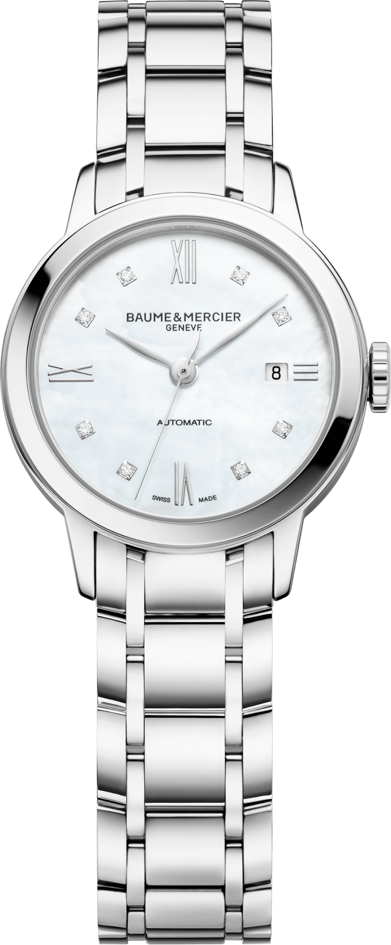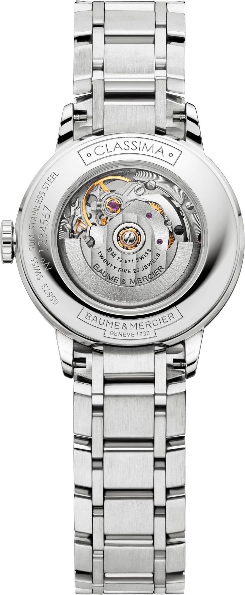 Funkce:Čas, datum, strojek swiss ETA 2671 (25 kamenů) - rezerva chodu 38 hodin, kmity setrvačky 28.800/h = diference 3 - 4 vteřiny denně, průhledné zadní víčko pro náhled na strojek, číselník zdobí 9 diamantů o váze 0,02 karátů. Firma Baume et Mercier Vám vyrobí na zakázku kožený řemínek ke každým hodinkám své produkce, který si vyberete z palety jejich vzorníku (modrý, modrý s bílým prošitím, modrý s modrým prošitím, modrý s béžovým prošitím a takto i další barvy kůže - viz.obrázek ve fotkách hodinek). Baume et Mercier je natolik prestižní firma, že opraví každé hodinky, které vyrobili od počátku svého vzniku, tedy od roku 1830. Baume & Mercier si vyrábí svoje vlastní hodinářské oleje, které vynikají svojí dlouhou životností - díky tomu je prodloužena doba pravidelného celkového servisu(vyčištění a namazání strojku) na 10 let.