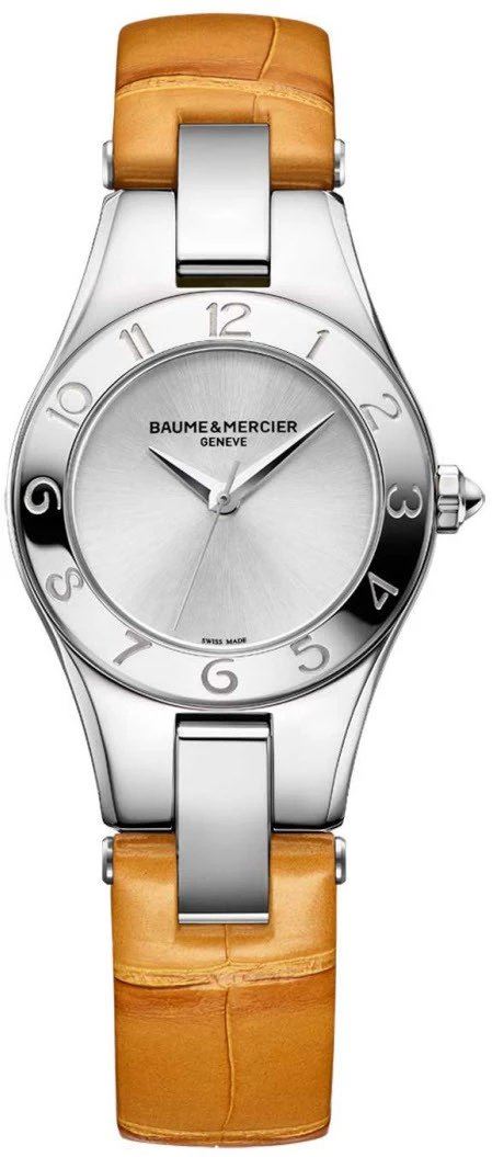 Funkce:Čas, quartzový strojek swiss ETA kalibr F04.111, přesnost chodu 0 - 0,4 vteřiny denně. Firma Baume et Mercier Vám vyrobí na zakázku kožený řemínek ke každým hodinkám své produkce, který si vyberete z palety jejich vzorníku (modrý, modrý s bílým prošitím, modrý s modrým prošitím, modrý s béžovým prošitím a takto i další barvy kůže - viz.obrázek ve fotkách hodinek). Baume et Mercier je natolik prestižní firma, že opraví každé hodinky, které vyrobili od počátku svého vzniku, tedy od roku 1830. Baume & Mercier si vyrábí svoje vlastní hodinářské oleje, které vynikají svojí dlouhou životností - díky tomu je prodloužena doba pravidelného celkového servisu(vyčištění a namazání strojku) na 10 let.. Firma Baume et Mercier Vám vyrobí na zakázku kožený řemínek ke každým hodinkám své produkce, který si vyberete z palety jejich vzorníku (modrý, modrý s bílým prošitím, modrý s modrým prošitím, modrý s béžovým prošitím a takto i další barvy kůže - viz.obrázek ve fotkách hodinek). Baume et Mercier je natolik prestižní firma, že opraví každé hodinky, které vyrobili od počátku svého vzniku, tedy od roku 1830. Baume & Mercier si vyrábí svoje vlastní hodinářské oleje, které vynikají svojí dlouhou životností - díky tomu je prodloužena doba pravidelného celkového servisu(vyčištění a namazání strojku) na 10 let.