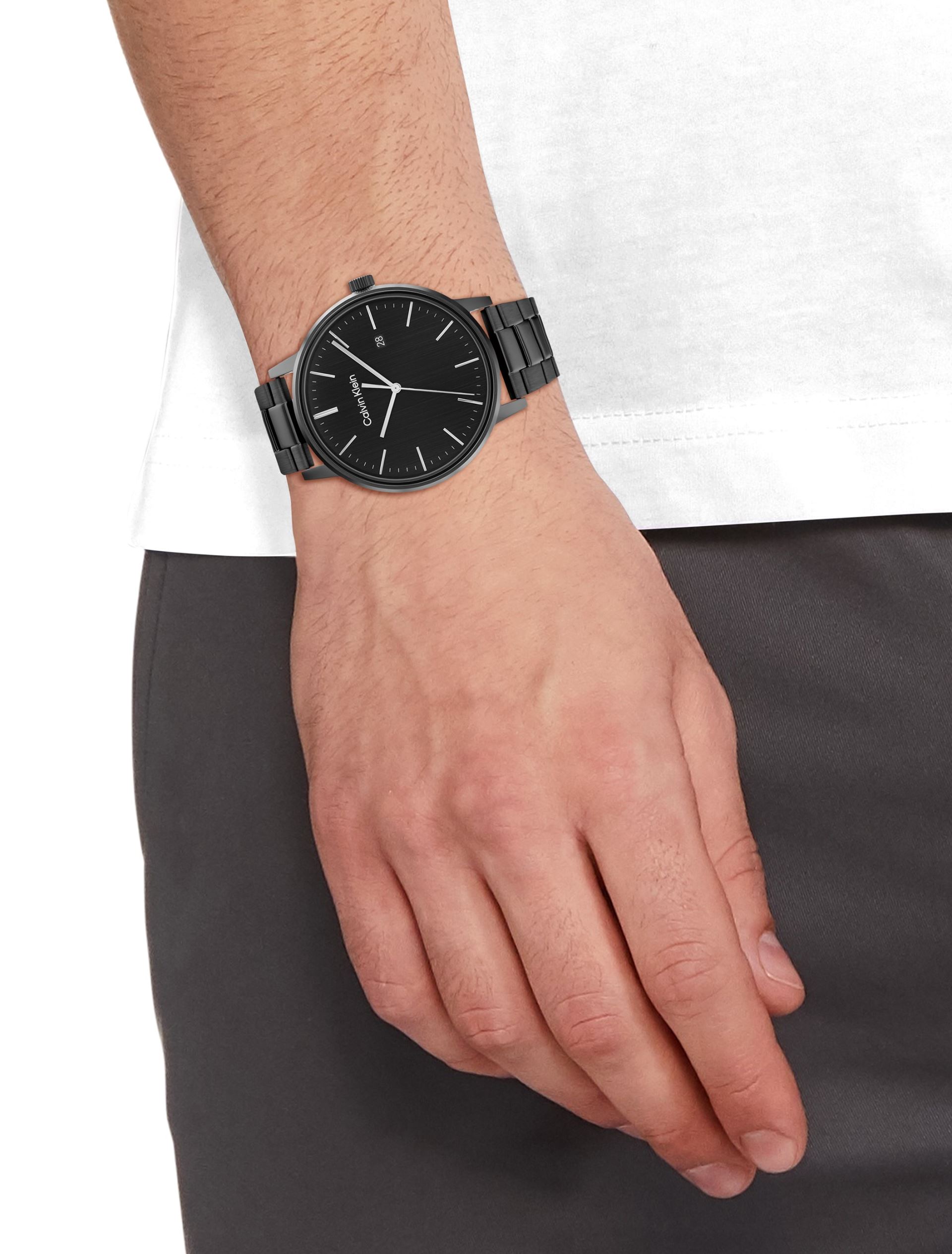 Pánské hodinky jsou oproti dámským ve většině větší. Na každou velikost zápěstí se hodí jiná velikost hodinek, i když samozřejmě záleží na vkusu majitele - když zákazník chce, aby byly hodinky na ruce vidět nebo chce, aby byly na první pohled dobře čitelné, volí si hodinky celkově větší. Větší hodinky jsou vhodné také tam, kde se čte z hodinek více údajů a někdy i podrobných údajů (chytré hodinky). Jestliže dává muž přednost eleganci, volí si hodinky menší a tenčí, mnohdy doplněné zlatými či zlacenými komponenty, které dodávají hodinkám ještě více elegantní design. I materiál pásku hraje pro celkový design velkou roli - kožené pásky jsou elegantní, kaučukové jsou převážně sportovní, ale dnes se již vyrábí i krásné kaučukové pásky elegantní nebo kovové náramky, které jsou dělené na jemnočlánkové (elegantní), velkočlánkové (sportovní) a nebo velikostní kombinace těchto dvou, kdy společně s povrchovou úpravou (např. lesk v kombinaci s matem) je náramek sportovněelegantní. Mezi další druhy pásků patří pásky textilní, ty jsou dle barvy sportovní nebo elegantní, pásky nylonové (elegance) a nebo plastové - těmi jsou osazeny hodinky primárně sportovního charakteru.