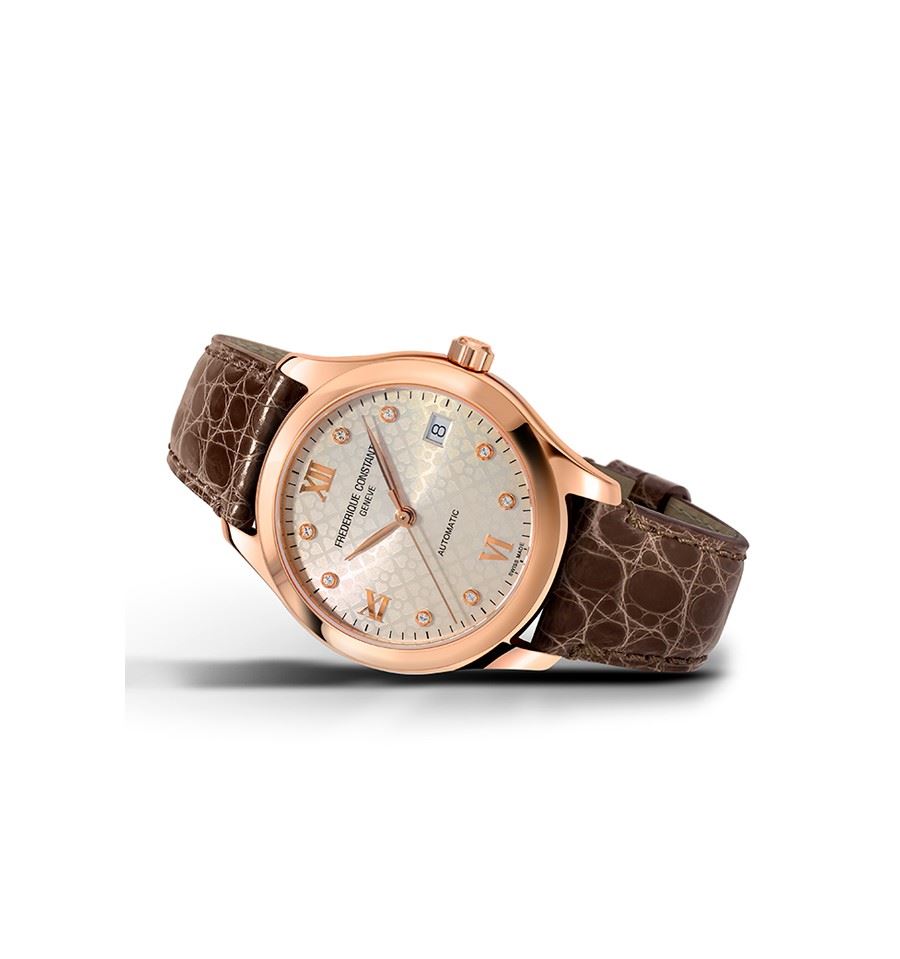 Funkce:Čas, datum, strojek FC-303 (použit strojek Sellita SW-200), 26 kamenů - rezerva chodu 38 hodin, kmity setrvačky 28.800/h = diference 3 - 4 vteřiny denně, číselník zdobí 8 diamantů o váze 0,08 karátů, průhledné zadní víčko pro náhled na strojek