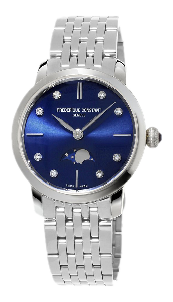 Funkce:Čas, fáze měsíce, číselník zdobí 8 diamantů o váze 0,02 karátů