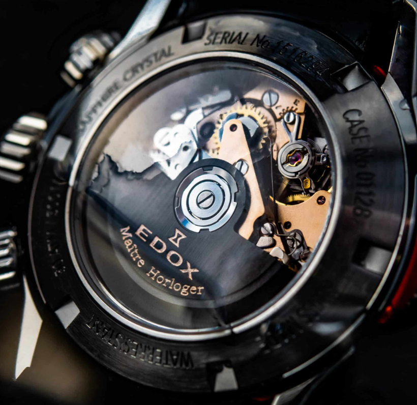 Funkce:Čas, datum, den v týdnu, strojek Swiss Sellita 500 = 25 kamenů (krokové ústrojí ocel/kámen), rezerva chodu 48 hodin, polokmity setrvačky 28.800/h = přesnost chodu 2 - 4 vteřiny denně, ozdobně lapovaný rotor samonátahu, automatický nátah (pohyb ruky) + ruční nátah (hodinky lze také natahovat i korunkou), speciální luminescenční směs SuperLuminova na ručkách i indexech (svit v noci i za šera), otočná keramická černá luneta se systémem uzamčení lunety na levé straně pouzdra, kde je také umístěn automatický heliový ventil