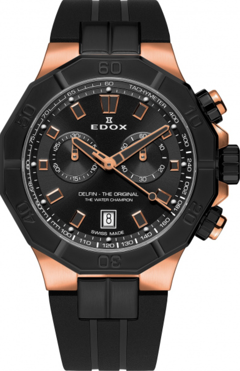 Funkce:Čas, datum, chronograf = stopky, tachymetr, stroj swiss Ronda 5021.D - přesnost chodu 0 – 0,5 vteřiny denně, svítící ručky a indexy, šroubovací korunka