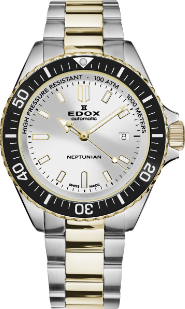 Super vodotěsné hodinky určené pro ponor až 100 metrů hloubky? To jsou hodinky Edox NEPTUNIAN AUTOMATIC 80120 357JM AID, konstrukčně připravené vydržet tlak vody až v takto extrémních hloubkách.
