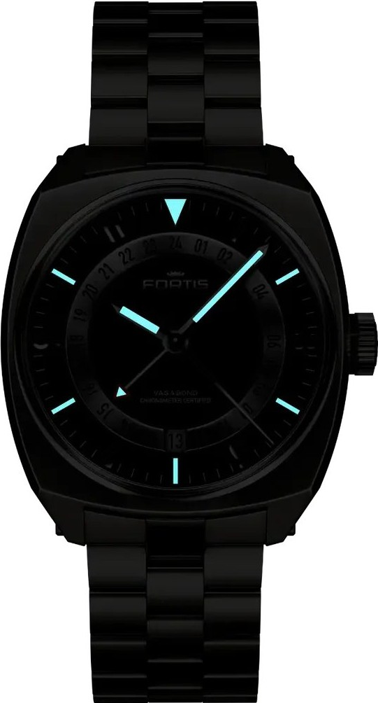 Uvnitř pracuje manufakturní automatický strojek Werk 13, vyvinutý pro Fortis společností Kenissi. Tento kalibr disponuje komplikací GMT a datum, takže umožňuje pohodlné sledování domácího i lokálního času. Rezerva chodu činí výborných 70 hodin, což zajišťuje velmi komfortní provoz i při odložení hodinek na více než dva dny. Fortis navíc uvádí, že jde o certifikovaný chronometr, což je důležitý ukazatel přesnosti a technické úrovně. Pro každodenní používání je praktická i možnost ručního nátahu a funkce hackingu, díky níž lze hodinky přesně seřídit. Werk 13 je přesně ten typ strojku, který dává modelu skutečnou váhu. Nejde jen o mechaniku kvůli dojmu, ale o moderní, vyspělé a dlouhodobě hodnotné řešení. U reference F6660000 je mechanický základ obzvlášť důležitý, protože podtrhuje dojem, že nejde o módní doplněk, ale o poctivě navržené hodinky s vyšší hodinářskou úrovní a jasně definovanou funkcí pro cestování i každodenní život.