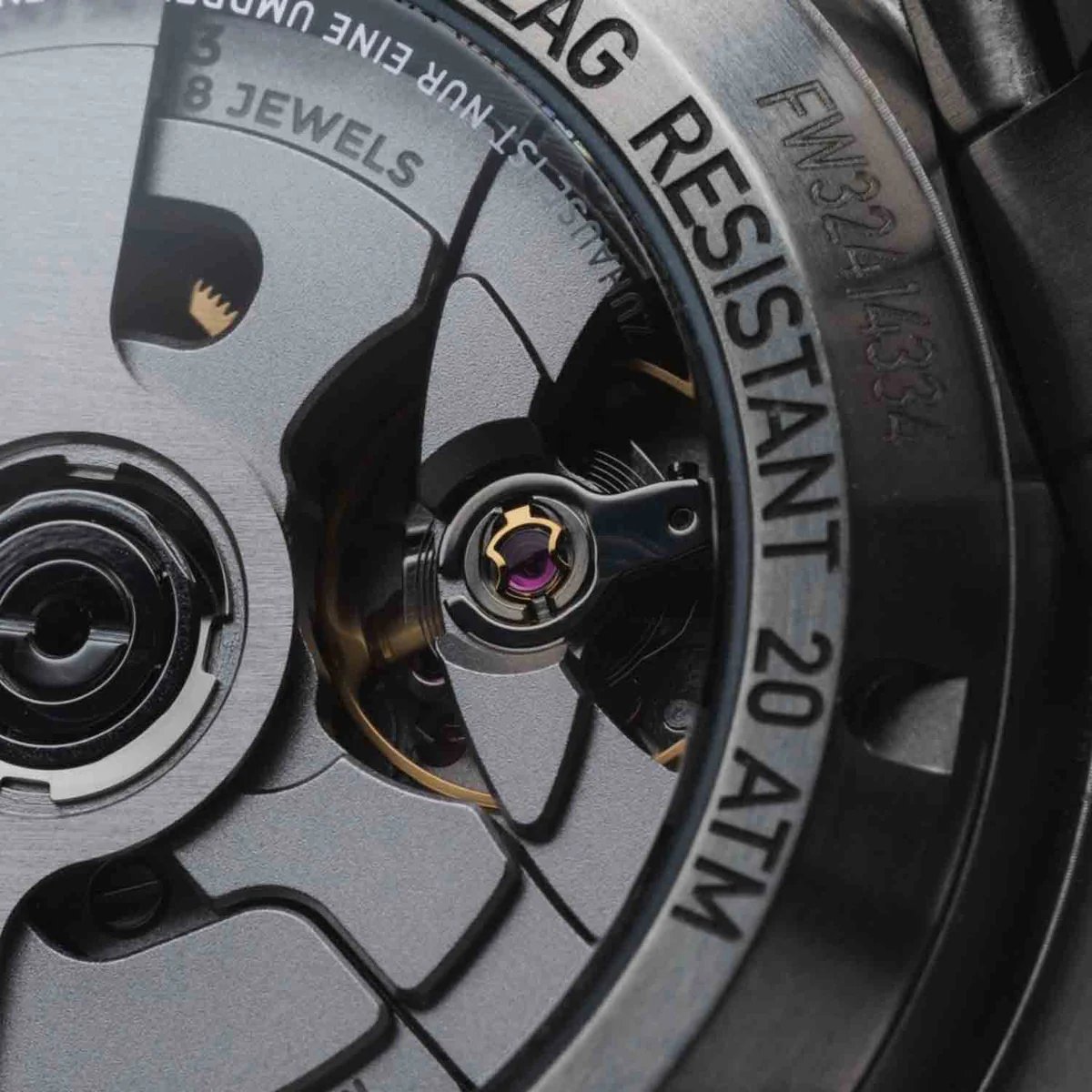 Funkce:Čas, datum, den v týdnu, strojek Swiss WERK 13 Manufacture (26 kamenů), krokové ústrojí ocel/kámen, rezerva chodu 60 hodin, polokmity setrvačky 28.800/h (4 Hz) = přesnost chodu (diference) 2 - 4 vteřiny denně, automatický nátah (hodinky se natahují pohybem ruky) + ruční nátah (hodinky lze natáhnout/dotáhnout dle potřeby i ručně korunkou), rotor samonátahu disponuje funkcí oboustranného nátahu, ručičky a indexy jsou opatřeny tenkou svítící vrstvou - tento materiál si dokáže udržet světlo a po krátkém nasvícení dlouhou dobu svítí (Superluminova® X1)