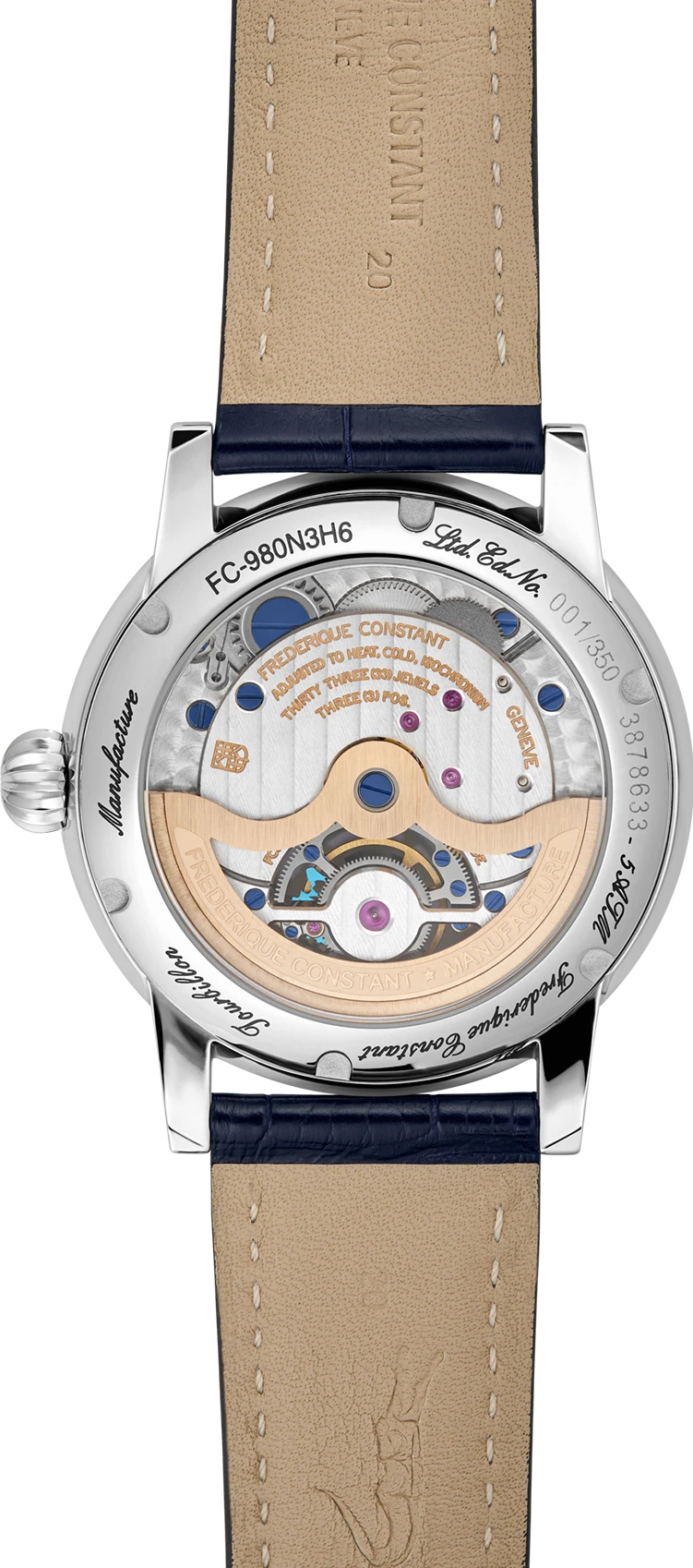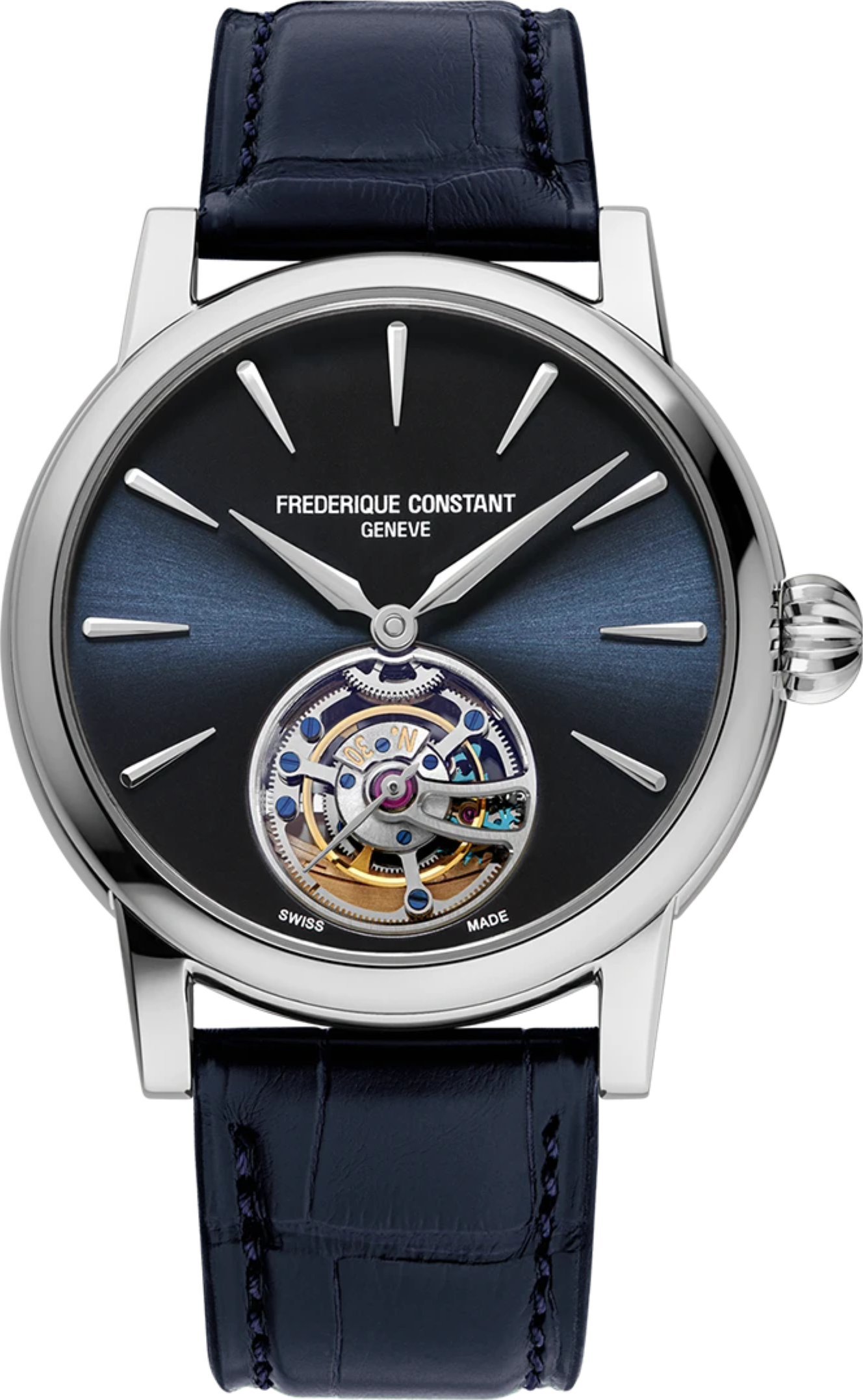 Funkce:Čas, švýcarský mechanický in-house strojek FC-980 s automatickým nátahem, rezerva chodu 38 hodin, 28.800 polokmitů setrvačky za hodinu = přesnost chodu 2 - 4 vteřiny denně, 33 kamenových uložení, modřené šroubky + zdobně lapované základny strojku, automatický nátah (pohybem ruky) + ruční nátah (hodinky lze natáhnout i ručně korunkou), průhledné víčko pouzdra pro náhled na strojek, hodinářská komplikace - Tourbillon