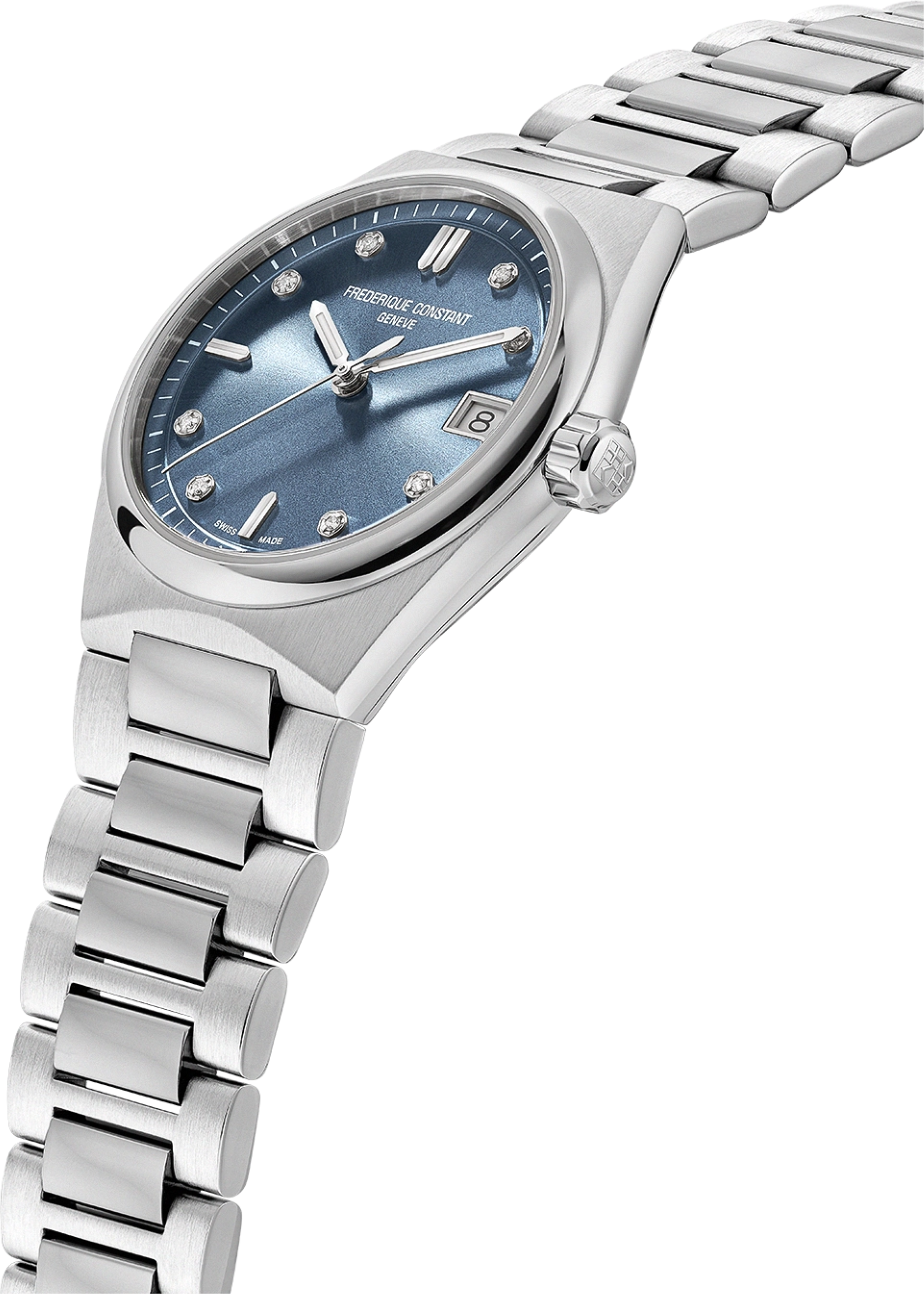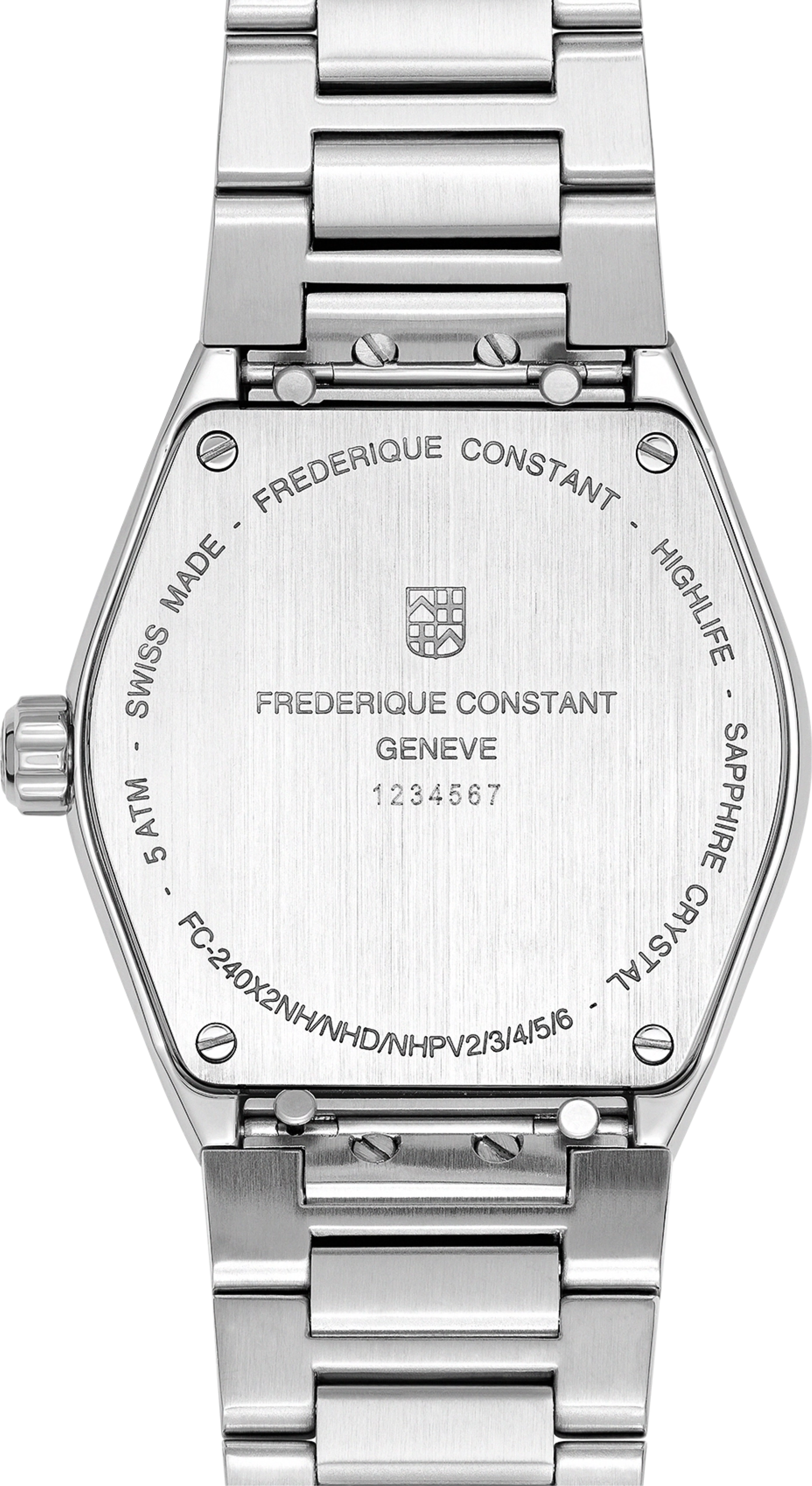 Kolekce Highlife Frederique Constant je rozhodně zaměřena na přítomný okamžik. Ztělesňuje ducha své doby, přijímá aktuální trendy a zůstává šik a impertinentní zároveň. Modely Highlife Ladies Quartz udávají hodiny, minuty, sekundy a datum ve tři hodiny. Jsou vybaveny vyměnitelným řemínkem integrovaným v této kolekci a dodávají se s přídavným pryžovým řemínkem. Jejich quartzový strojek má výdrž baterie 5 let.