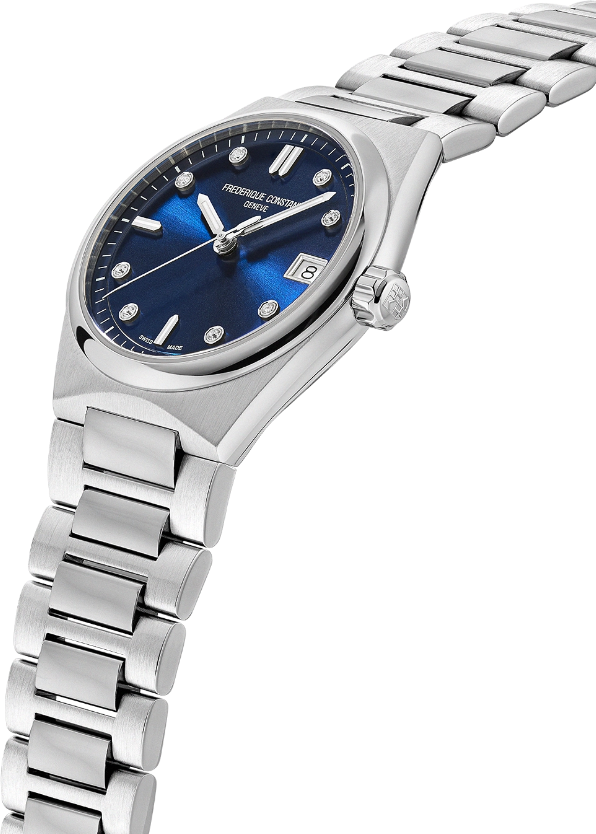 Kolekce Highlife Frederique Constant je rozhodně zaměřena na přítomný okamžik. Ztělesňuje ducha své doby, přijímá aktuální trendy a zůstává šik a impertinentní zároveň. Modely Highlife Ladies Quartz udávají hodiny, minuty, sekundy a datum ve tři hodiny. Jsou vybaveny vyměnitelným řemínkem integrovaným v této kolekci a dodávají se s přídavným pryžovým řemínkem. Jejich quartzový strojek má výdrž baterie 5 let.