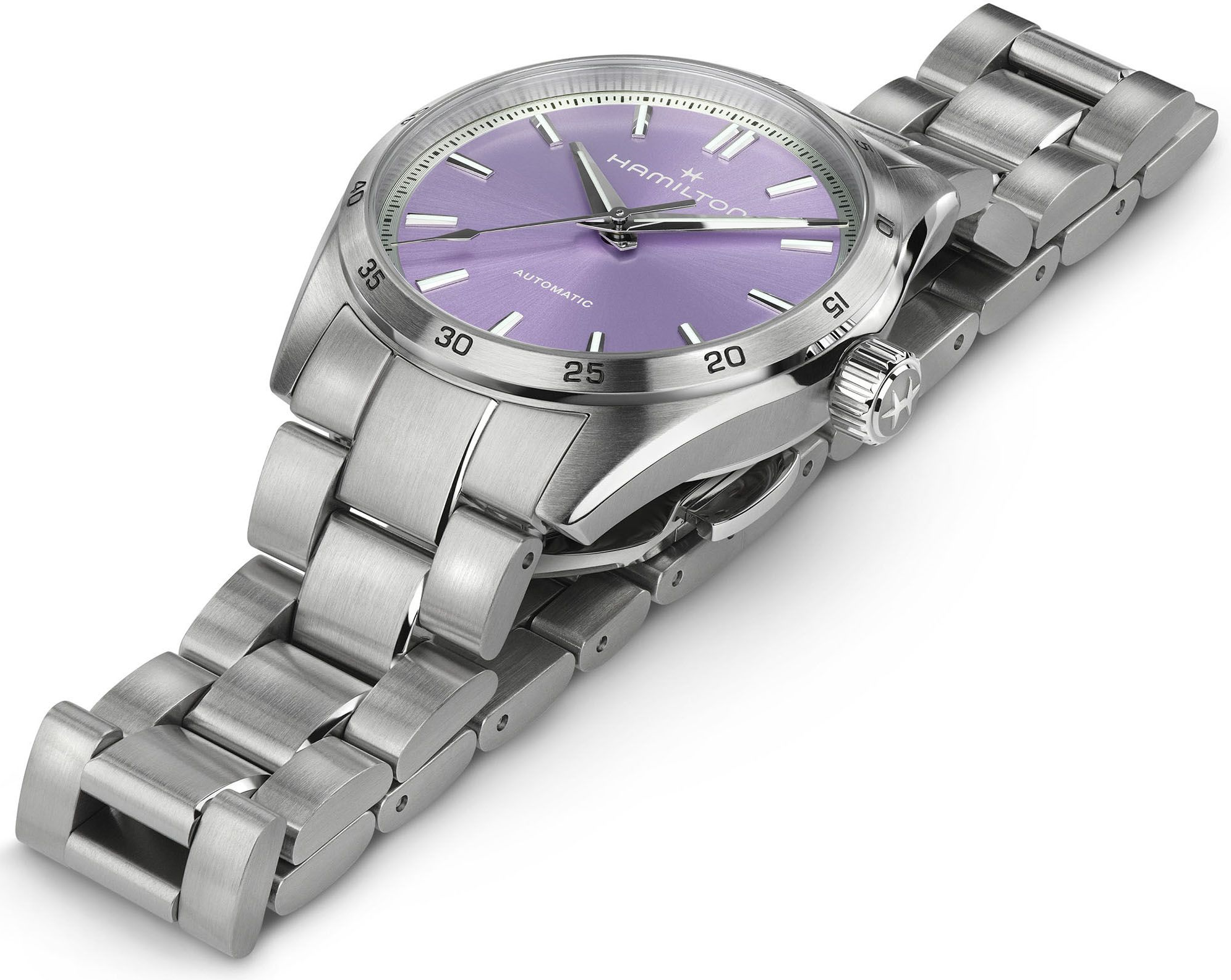 Funkce:Čas, datum, strojek Swiss kalibr H-10 (krokové ústrojí ocel/kámen) - vyráběn firmou Eta exklusivně pro Hamilton (25 kamenů), rezerva chodu 80 hodin, polokmity setrvačky 21.600/h = přesnost chodu 3 - 5 vteřin denně (vysoké přesnosti stroje je docíleno jemnou regulací šroubky na ramínkách věnce setrvačky), úprava rotoru samonátahu dle vzoru Hamilton - rotor zaopatřen speciálními výřezy pro tlumení případných nárazů na hodinky během nošení, vlásek setrvačky je vyroben ze slitiny materiálů Nivachron (velmi dobře odolává magnetickému poli a díky tomu jsou hodinky stabilně vysoce přesné), automatický nátah (hodinky se natahují pohybem ruky) + ruční nátah (hodinky lze natáhnout/dotáhnout dle potřeby i ručně korunkou), průhledné zadní víčko pro náhled na strojek, svítící ručičky a indexy (ručičky a indexy jsou potaženy luminiscenční vrstvou Super-LumiNova®, která po nasvícení dlouhou dobu svítí)