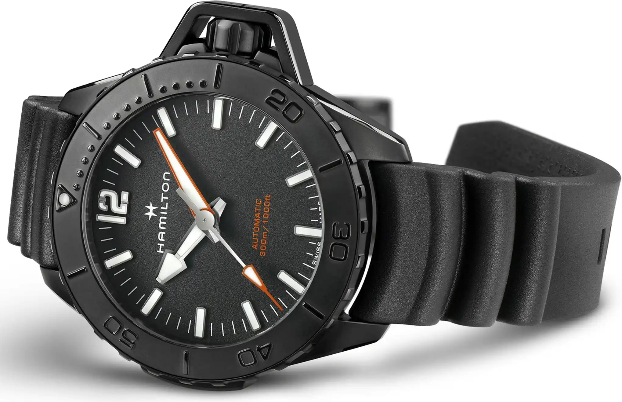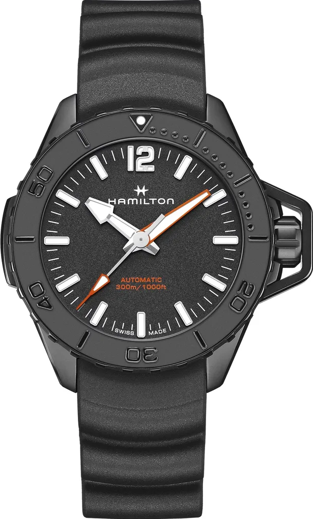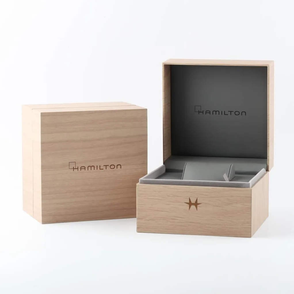 Funkce:Čas, strojek Swiss kalibr H-10 (krokové ústrojí ocel/kámen) - vyráběn firmou Eta exklusivně pro Hamilton (25 kamenů), rezerva chodu 80 hodin, polokmity setrvačky 21.600/h = přesnost chodu 3 - 5 vteřin denně (vysoké přesnosti stroje je docíleno jemnou regulací šroubky na ramínkách věnce setrvačky), úprava rotoru samonátahu dle vzoru Hamilton - rotor zaopatřen speciálními výřezy pro tlumení případných nárazů na hodinky během nošení, automatický nátah (hodinky se natahují pohybem ruky) + ruční nátah (hodinky lze natáhnout/dotáhnout dle potřeby i ručně korunkou), svítící ručičky a indexy (ručičky a indexy jsou potaženy luminiscenční vrstvou Super-LumiNova®, která po nasvícení dlouhou dobu svítí)