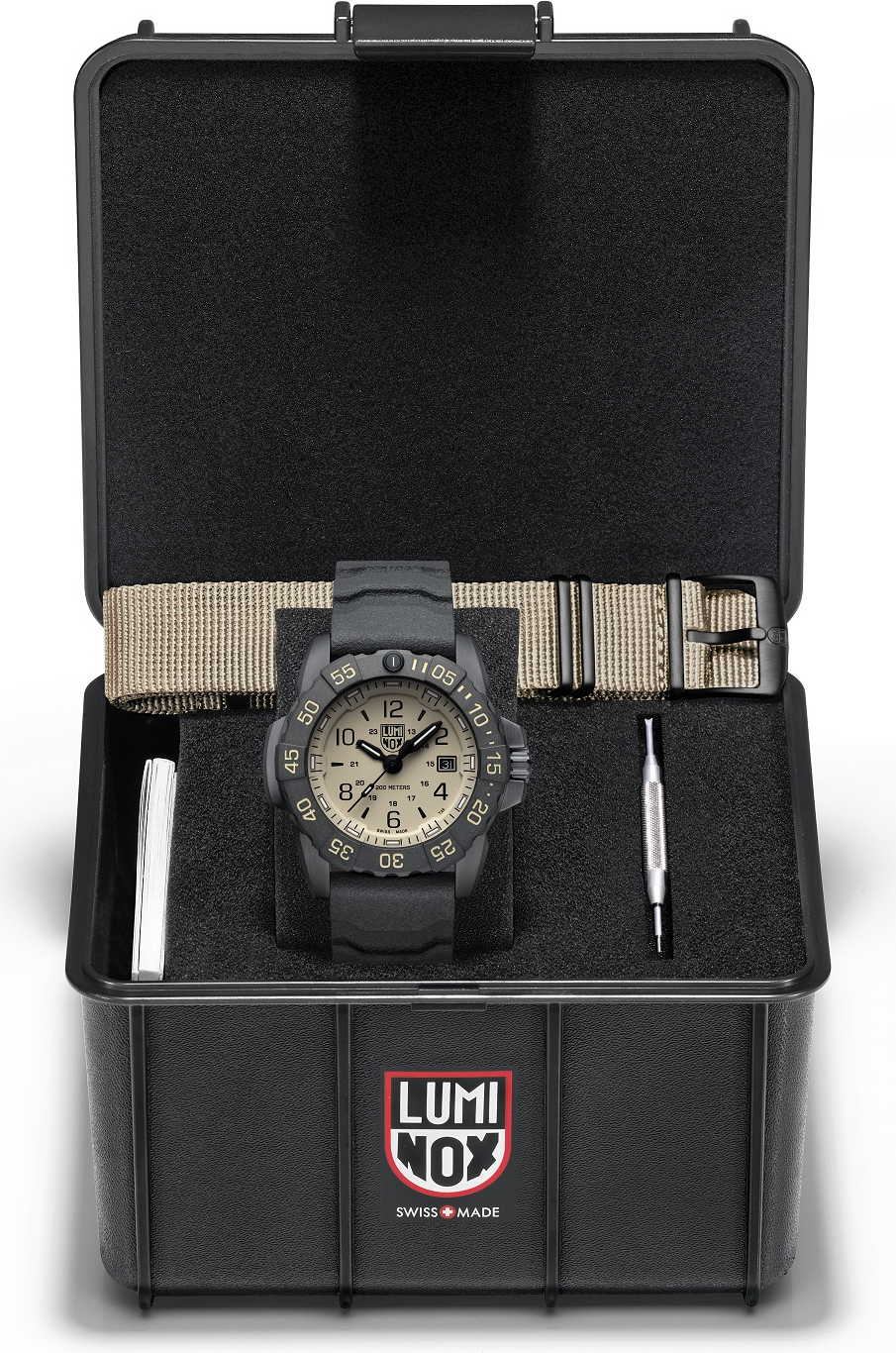 Funkce:Čas, datum, jednosměrně otočná luneta, quartzový strojek Ronda 715 s výdrží baterie až 60 měsíců, svítící ručky a indexy, šroubovací korunka. Největší předností hodinek je tritiová luminiscence, která zajistí čitelnost hodinek ve tmě, bez jakéhokoliv nasvěcování, až na 25 let.