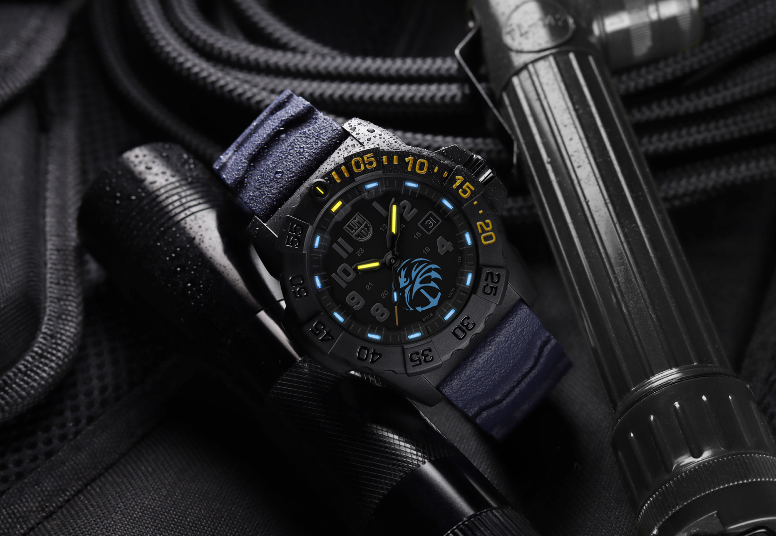 Materiálově je model řešen velmi důsledně. CARBONOX™ pouzdro zajišťuje lehkost a odolnost, zatímco 316L nerezové šroubovací dýnko přidává pevnost konstrukce. Výška pouzdra činí 14 mm, takže hodinky působí robustně, ale stále velmi dobře sedí na ruce. Výrobce uvádí modrý nitrilový gumový řemínek šířky 24 mm a stejně barevně řešený detail spony, což dává modelu výraznější a současně symbolicky silný charakter. Modrá zde nefunguje jako módní akcent, ale jako prvek navazující na identitu Navy SEAL Foundation a na myšlenku světla a podpory. Díky tomu působí model osobitěji než klasické černé řady 3500, ale stále si zachovává plnou technickou věrohodnost. Na ruce tak hodinky nepůsobí jako stylová hračka, ale jako robustní military model s jasným příběhem. A právě tato kombinace významu a použitelnosti dělá z The Guardian mimořádně přesvědčivou limitovanou referenci.