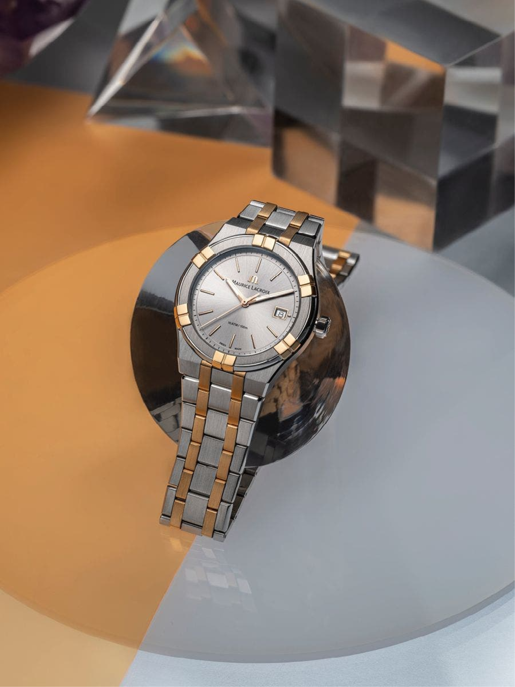 Barva hodinek (pouzdra):bicolor - stříbrná ušlechtilá ocel 316L v kombinaci se zlacením žlutého zlata (PVD Yellow Gold)Barva hodinek - přesněji řečeno odstín pouzdra - není nadřazená designu modelu hodinek. V mnoha případech je barva pouzdra shodná s barvou pásku - povětšinou mají-li hodinky kovový náramek.