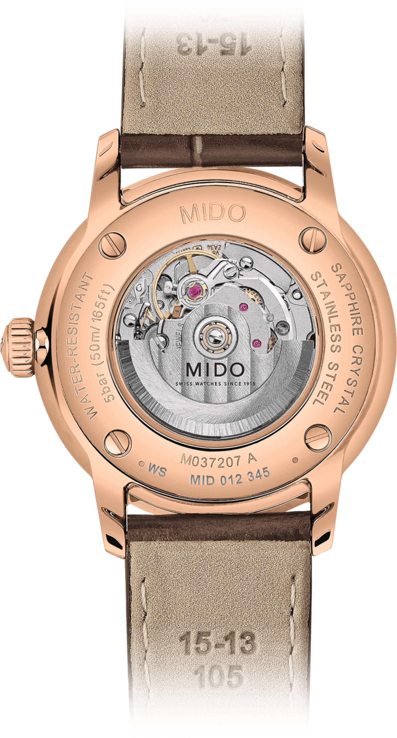 Funkce:Čas, datum, strojek Swiss Mido Automatic Eta 2671, 25 kamenových uložení, rezerva chodu 44 hodin, krokové ústrojí ocel/kámen, polokmity setrvačky 28.800 (4 Hz) = přesnost chodu (diference) 2 - 4 vteřiny denně, vlásek setrvačky je vyroben z materiálu Nivachron - velmi dobře odolává magnetickému poli (až 20x odolnější vůči magnetickému poli jak klasický slitinový vlásek) a díky tomu jsou hodinky přesnější a stabilnější v chodu, automatický nátah (hodinky se natahují pohybem ruky) + ruční nátah (hodinky lze natáhnout/dotáhnout dle potřeby i ručně korunkou, rotor samonátahu disponuje funkcí oboustranného nátahu, průhledné zadní víčko pro náhled na strojek