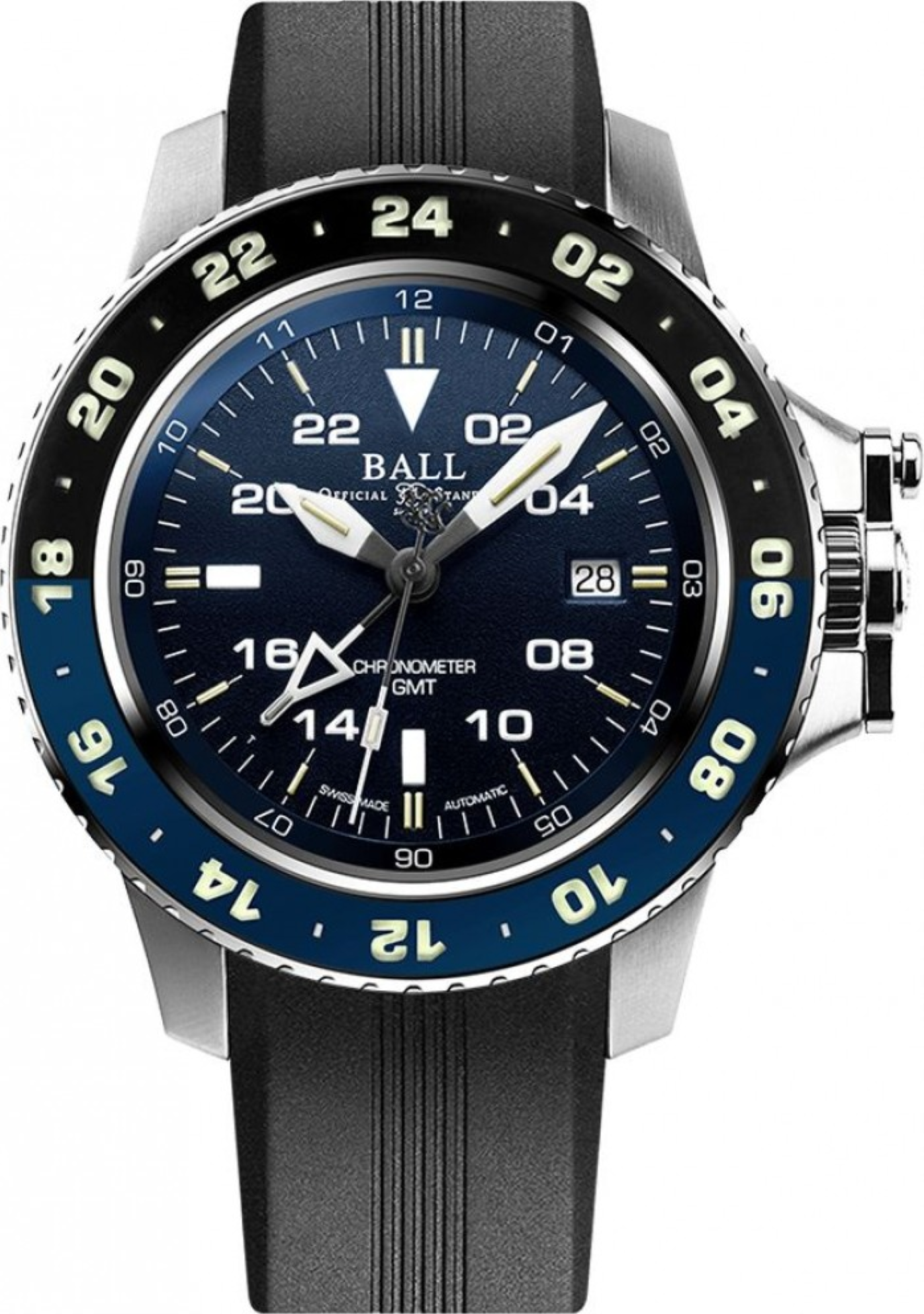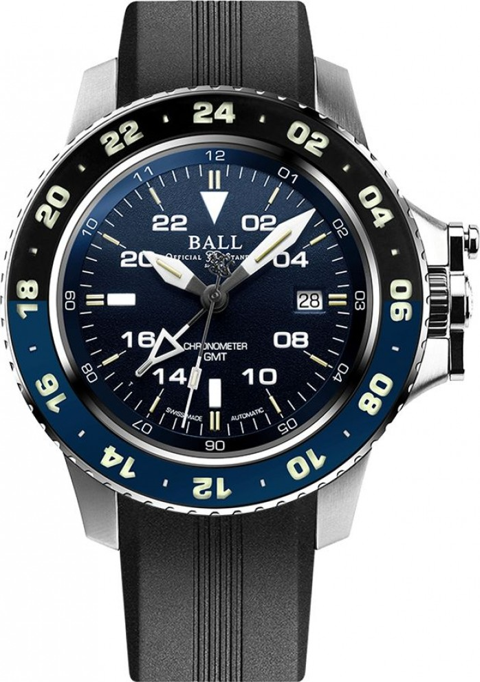 Funkce:Čas, datum, GMT (druhý světový čas), oboustranně otočná luminisceční luneta (číslice/indexy na lunetě v noci svítí), strojek Ball calibre RR1201 (základ swiss Eta 2892) - rezerva chodu 42 hodin, automatický nátah (pohybem ruky) + ruční nátah (hodinky lze natáhnout i mechanicky - ručně), 28.800 polokmitů setrvačky za hodinu, COSC certifikát přesnosti strojku - přesnost chodu 0 - 3 vteřiny/den, 21 kamenových uložení, patentovaný systém ochrany korunky, Shock resistance - odolnost nárazu 7 500 Gs = možný pád hodinek až z jednoho a půl metru bez poškození strojku (hodinky jsou tímto zároveň odolné nárazům identické síly), odolnost vůči magnetickému poli 4 800 A/m (takto označené hodinky už se označují jako antimagnetické, odolávají běžnému magnetickému poli). V číselníku jsou indexy a ručičky plněny mikroampulkami se svítícím plynem, který má schopnost svítit nonstop 25 let. Díky tomu uvidíte kdykoliv a kdekoliv ve tmě správný čas. Kónický náramek z nerezové oceli s patentovanou skládacím sponou a prodlužovacím systémem nebo gumovým páskem se standardní sponou
