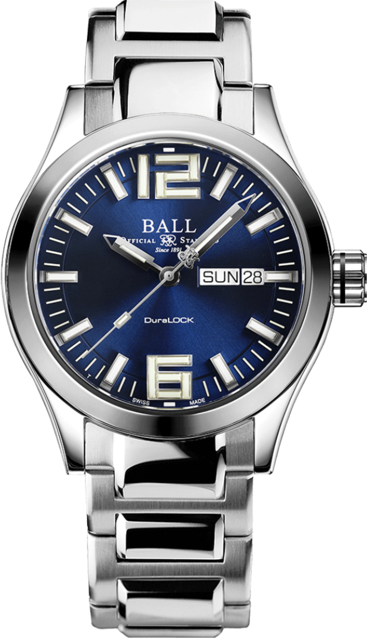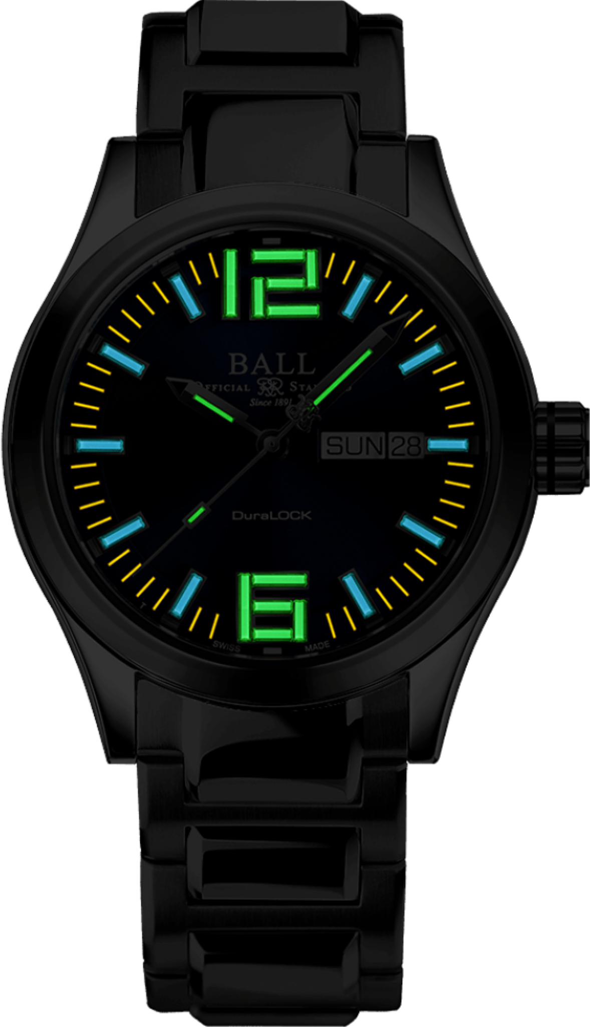 Funkce:Čas, datum, den v týdnu, patentovaná šroubovací korunka DuraLOCK, strojek Ball calibre RR1102 - SL (základ swiss Eta 2824) - rezerva chodu 38 hodin (+ ruční nátah), 28.800 polokmitů setrvačky za hodinu - přesnost chodu 3 - 4 vteřiny denně, 26 kamenových uložení, SpringLOCK - patentovaný systém ochrany vlásku proti nárazům (vlásek setrvačky je nejjemnější součástka hodinek, která je přímo zodpovědná za přesnost chodu. Nárazy, které každé hodinky mají během nošení, se vlásek různě deformuje, což způsobuje nepatrné diference. Tato ochrana zaručuje eliminaci těchto otřesů a díky tomu jsou hodinky s tímto systémem velmi přesné), Amortiser® patentovaný systém ochrany proti nárazům = odolnost nárazu 5 000 Gs = možný pád hodinek až z jednoho metru bez poškození strojku (hodinky jsou tímto zároveň odolné podobným nárazům identické síly), vysoká ochrana hodinek před zmagnetováním vlásku setrvačky (až 80 000 A/m - za antimagnetické hodinky už lze považovat hodinky s 4 800 A/m). V číselníku jsou indexy a ručičky plněny svítícím plynem, který má schopnost svítit nonstop 25 let. Díky tomu uvidíte kdykoliv a kdekoliv ve tmě správný čas.