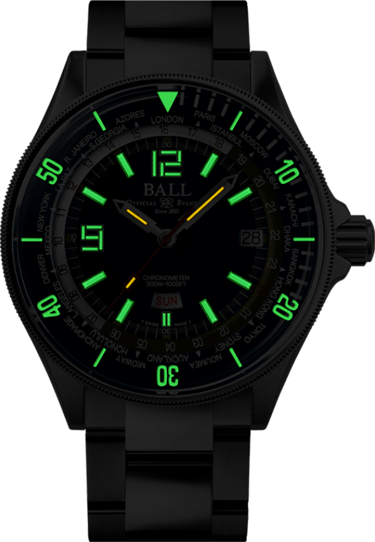 Funkce:Čas, datum, den v týdnu, jednosměrně otočná luminisceční luneta (číslice/indexy na lunetě v noci svítí - SuperLuminova), šroubovací korunka, strojek Ball calibre RR1102 (základ swiss Eta 2824) - rezerva chodu 38 hodin, automatický nátah (pohybem ruky) + ruční nátah (hodinky lze natáhnout i mechanicky - ručně), 28.800 polokmitů setrvačky za hodinu, COSC certifikát přesnosti strojku - přesnost chodu 0 - 3 vteřiny/den, 25 kamenových uložení,, Amortiser® patentovaný systém ochrany strojku proti nárazům (zadním víčkem pouzdra lze "uzamčít" rotor samonátahu a tím ho znehybnit, což umožní dokonalou ochranu ložiska rotoru proti nárazům), velmi odolné vůči magnetickému poli 80 000 A/m (za antimagnetické hodinky už lze považovat hodinky s 4 800 A/m), odolnost nárazu 5 000 Gs = možný pád hodinek až z jednoho metru bez poškození strojku (hodinky jsou tímto zároveň odolné podobným nárazům identické síly). V číselníku jsou indexy a ručičky plněny mikroampulkami se svítícím plynem, který má schopnost svítit nonstop 25 let. Díky tomu uvidíte kdykoliv a kdekoliv ve tmě, jaký je správný čas.
