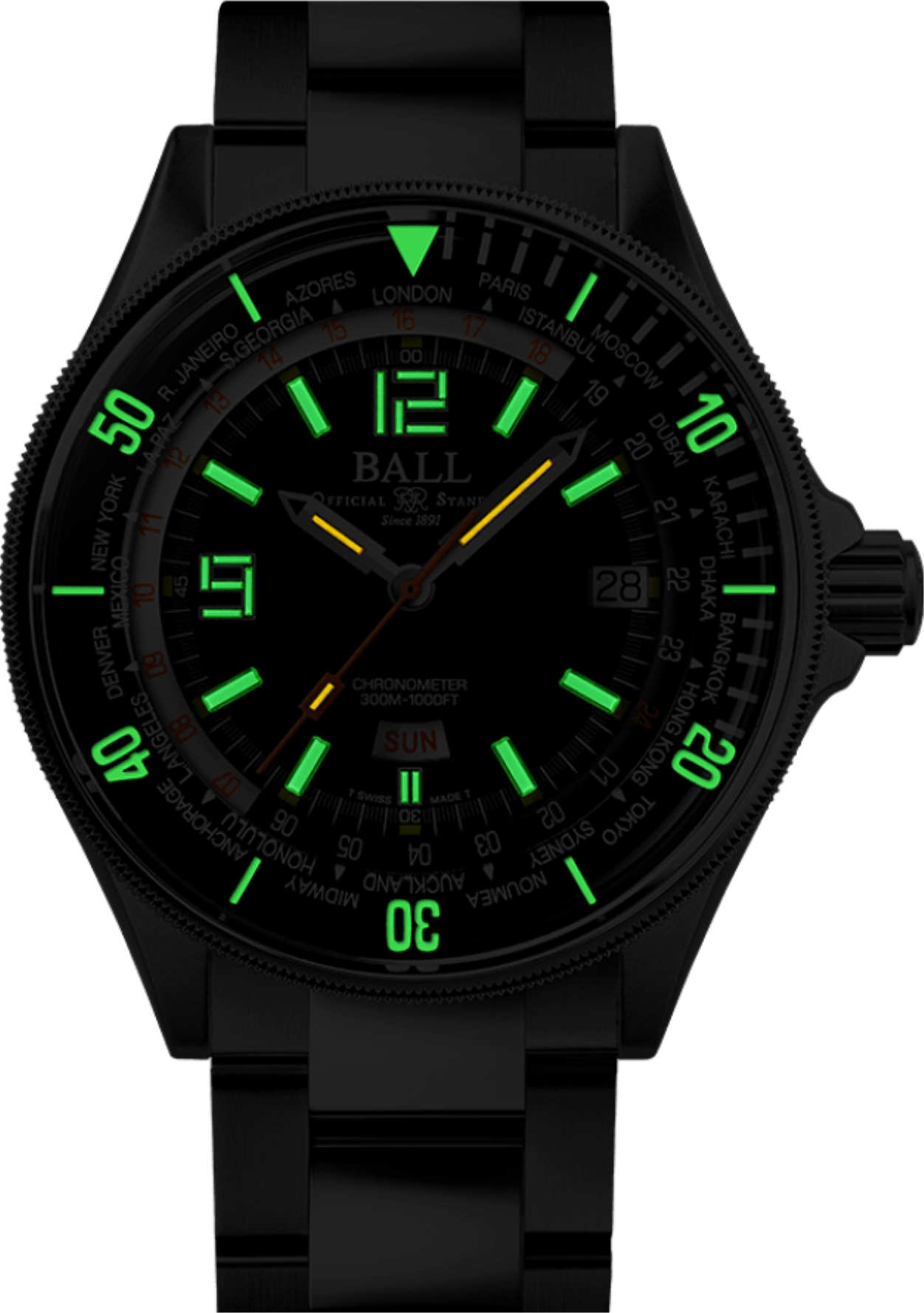Funkce:Čas, datum, den v týdnu, jednosměrně otočná luminisceční luneta (číslice/indexy na lunetě v noci svítí - SuperLuminova), šroubovací korunka, strojek Ball calibre RR1102 (základ swiss Eta 2824) - rezerva chodu 38 hodin, automatický nátah (pohybem ruky) + ruční nátah (hodinky lze natáhnout i mechanicky - ručně), 28.800 polokmitů setrvačky za hodinu, COSC certifikát přesnosti strojku - přesnost chodu 0 - 3 vteřiny/den, 25 kamenových uložení,, Amortiser® patentovaný systém ochrany strojku proti nárazům (zadním víčkem pouzdra lze "uzamčít" rotor samonátahu a tím ho znehybnit, což umožní dokonalou ochranu ložiska rotoru proti nárazům), velmi odolné vůči magnetickému poli 80 000 A/m (za antimagnetické hodinky už lze považovat hodinky s 4 800 A/m), odolnost nárazu 5 000 Gs = možný pád hodinek až z jednoho metru bez poškození strojku (hodinky jsou tímto zároveň odolné podobným nárazům identické síly). V číselníku jsou indexy a ručičky plněny mikroampulkami se svítícím plynem, který má schopnost svítit nonstop 25 let. Díky tomu uvidíte kdykoliv a kdekoliv ve tmě, jaký je správný čas.