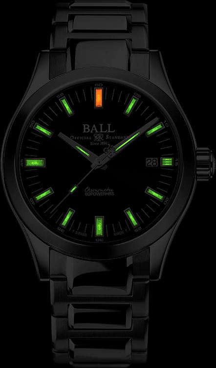 Funkce:Čas, datum, strojek vlastní výroby (swiss in-house) Ball calibre 7309 –C - rezerva chodu 80 hodin (+ ruční nátah), 28.800 polokmitů setrvačky za hodinu, COSC certifikát přesnosti strojku - přesnost chodu 0 - 3 vteřiny denně, 25 kamenových uložení, průhledné zadní víčko pro náhled na strojek, šroubovací korunka, průhledné víčko pro náhled na strojek (safírové sklo), Amortiser® patentovaný systém ochrany strojku proti nárazům - odolnost nárazu 5 000 Gs = možný pád hodinek až z jednoho metru bez poškození strojku (hodinky jsou tímto zároveň odolné nárazům identické síly), odolnost vůči magnetickému poli 4 800 A/m (takto označené hodinky už se označují jako antimagnetické, odolávají běžnému magnetickému poli) V číselníku jsou indexy a ručičky plněny svítícím plynem, který má schopnost svítit nonstop 24 hodin. Díky tomu uvidíte kdykoliv a kdekoliv ve tmě, jaký je správný čas.