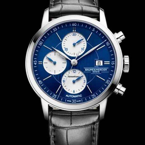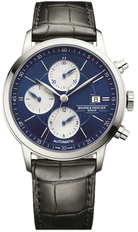Funkce:Čas, datum, chronograf = stopky, strojek swiss ETA 7750 (25 kamenů), rezerva chodu 48hodin, kmity setrvačky 28.800/h = přesnost chodu 3 - 4 vteřiny denně, průhledné zadní víčko pro náhled na strojek. Firma Baume et Mercier Vám vyrobí na zakázku kožený řemínek ke každým hodinkám své produkce, který si vyberete z palety jejich vzorníku (modrý, modrý s bílým prošitím, modrý s modrým prošitím, modrý s béžovým prošitím a takto i další barvy kůže - viz.obrázek ve fotkách hodinek). Baume et Mercier je natolik prestižní firma, že opraví každé hodinky, které vyrobili od počátku svého vzniku, tedy od roku 1830. Baume & Mercier si vyrábí svoje vlastní hodinářské oleje, které vynikají svojí dlouhou životností - díky tomu je prodloužena doba pravidelného celkového servisu(vyčištění a namazání strojku) na 10 let.