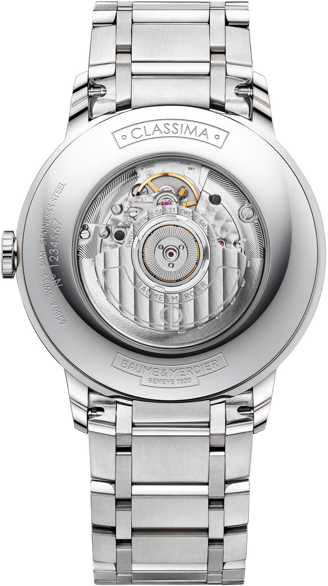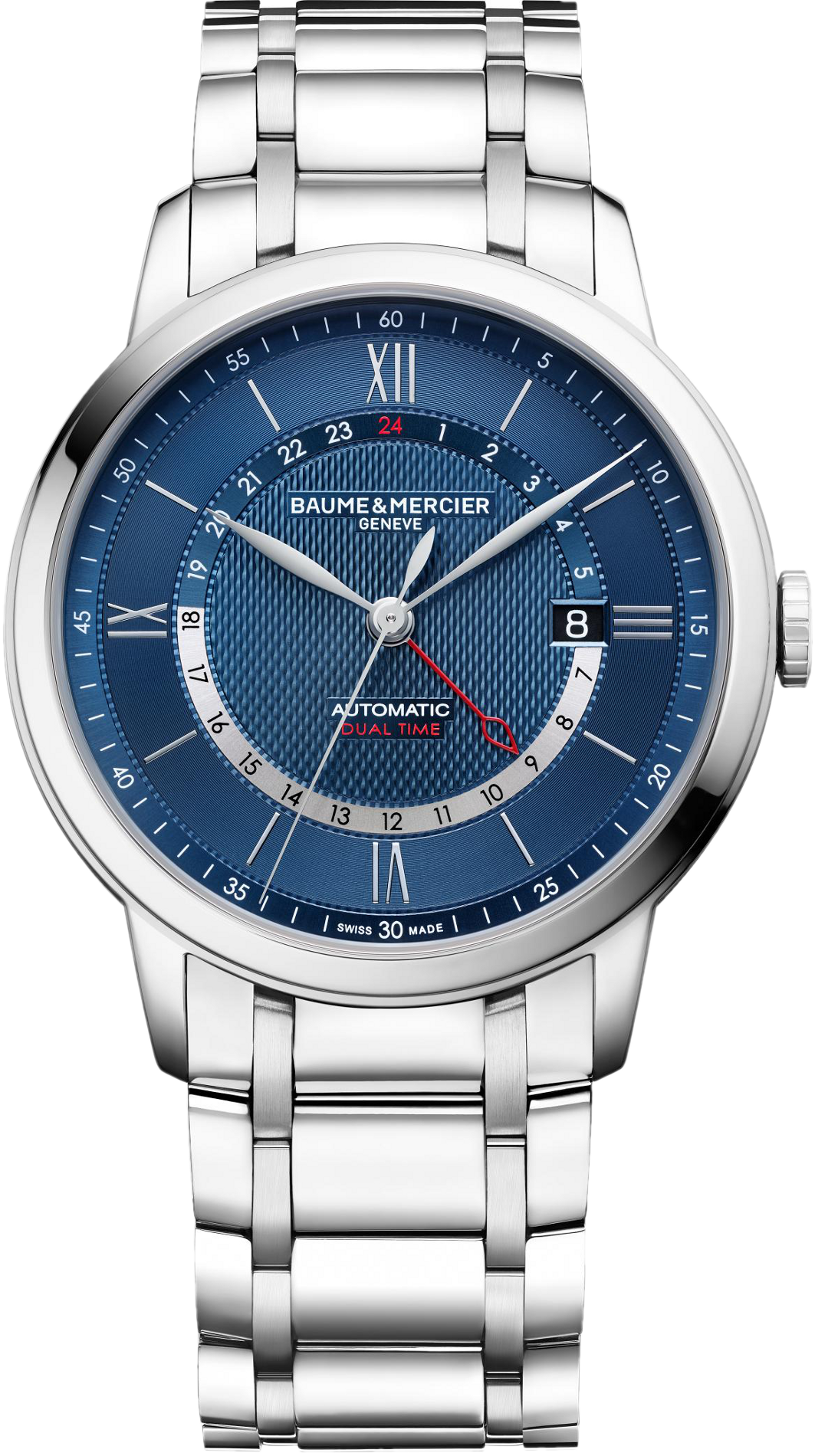 Funkce:Čas, duální čas, datum, strojek Swiss ETA 2893-2 - 21 kamenů, rezerva chodu 42 hodin, kmity setrvačky 28.800/h = přesnost chodu 3 - 4 vteřiny denně, průhledné zadní víčko pro náhled na strojek. Firma Baume et Mercier Vám vyrobí na zakázku kožený řemínek ke každým hodinkám své produkce, který si vyberete z palety jejich vzorníku (modrý, modrý s bílým prošitím, modrý s modrým prošitím, modrý s béžovým prošitím a takto i další barvy kůže - viz.obrázek ve fotkách hodinek). Baume et Mercier je natolik prestižní firma, že opraví každé hodinky, které vyrobili od počátku svého vzniku, tedy od roku 1830. Baume & Mercier si vyrábí svoje vlastní hodinářské oleje, které vynikají svojí dlouhou životností - díky tomu je prodloužena doba pravidelného celkového servisu(vyčištění a namazání strojku) na 10 let.