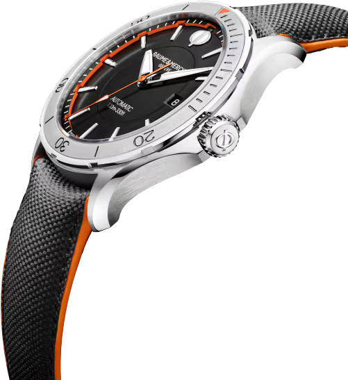 Precizně zpracované pouzdro z nerezové oceli doplňuje výrazný kožený řemínek „All Roads“ z telecí kůže s exkluzivním sailcloth vzorem. Jeho rubová strana v odvážném oranžovém odstínu dodává hodinkám nepřehlédnutelný akcent a podtrhuje jejich energický, nekonvenční charakter. Model Clifton Club 10338 je ideální volbou pro muže, kteří hledají sportovní výkon, výrazný styl a švýcarskou kvalitu značky Baume & Mercier v jednom harmonickém celku.