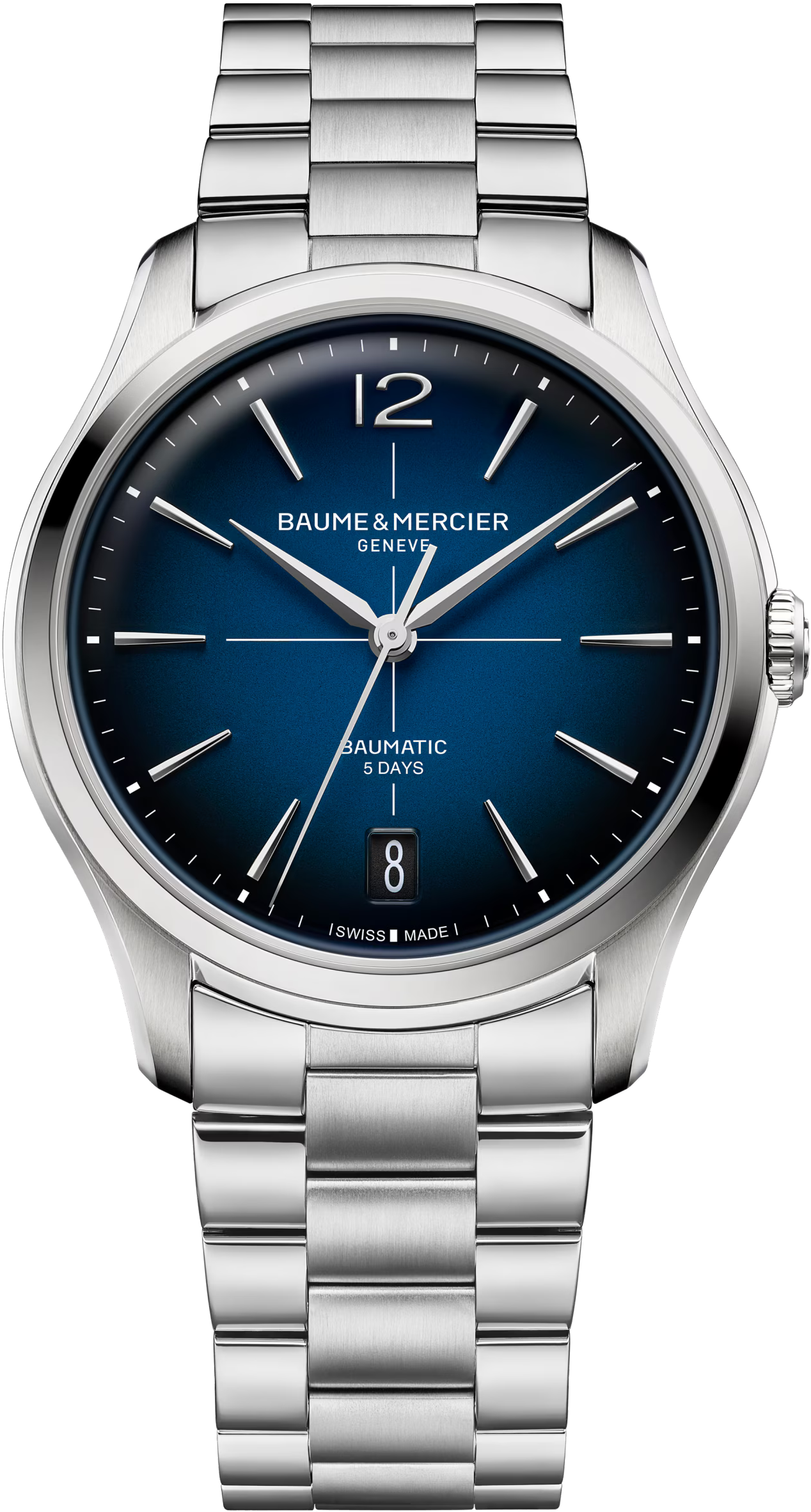 Funkce:Čas, datum, strojek vlastní výroby Swiss Baume & Mercier Baumatic BM13 -1975A = rezerva chodu 120 hodin (5 dní), 21 kamenů, 28.800 polokmitů za hodinu = přesnost chodu 2 - 4 vteřiny denně, krokové ústrojí je kompletně vyrobené z křemíku (minimální tření = vysoká přesnost chodu), celý strojek je chráněn proti magnetismu speciálním anti-magnetickým kroužkem Chrome Core (hodinky odolávají různě silným magnetickým polím, které jsou dnes prakticky všudypřítomné a tím jsou eliminovány případné diference, tzn. další přednost pro ještě vyšší přesnost hodinek), automatický nátah (hodinky se natahují pohybem ruky) + ruční nátah (hodinky lze natáhnout/dotáhnout dle potřeby i ručně korunkou), průhledné zadní víčko pro náhled na strojek, rychlá výměna pásků a náramků samotným uživatelem, abnormálně tenké hodinky na rezervu chodu 120 hodin. Firma Baume et Mercier Vám vyrobí na zakázku kožený řemínek ke každým hodinkám své produkce, který si vyberete z palety jejich vzorníku (modrý, modrý s bílým prošitím, modrý s modrým prošitím, modrý s béžovým prošitím a takto i další barvy kůže - viz.obrázek ve fotkách hodinek). Baume et Mercier je natolik prestižní firma, že opraví každé hodinky, které vyrobili od počátku svého vzniku, tedy od roku 1830. Baume & Mercier si vyrábí svoje vlastní hodinářské oleje, které vynikají svojí dlouhou životností - díky tomu je prodloužena doba pravidelného celkového servisu(vyčištění a namazání strojku) na 10 let.