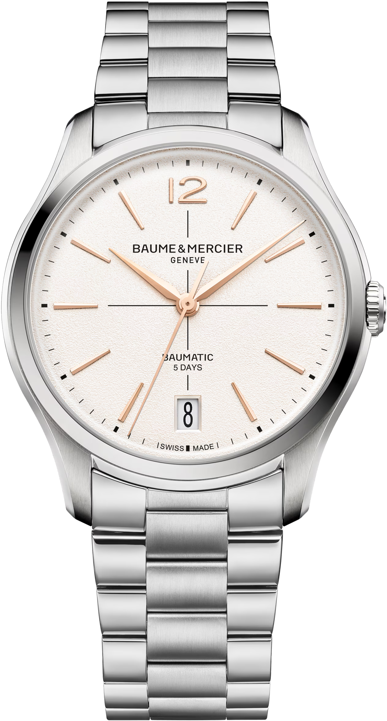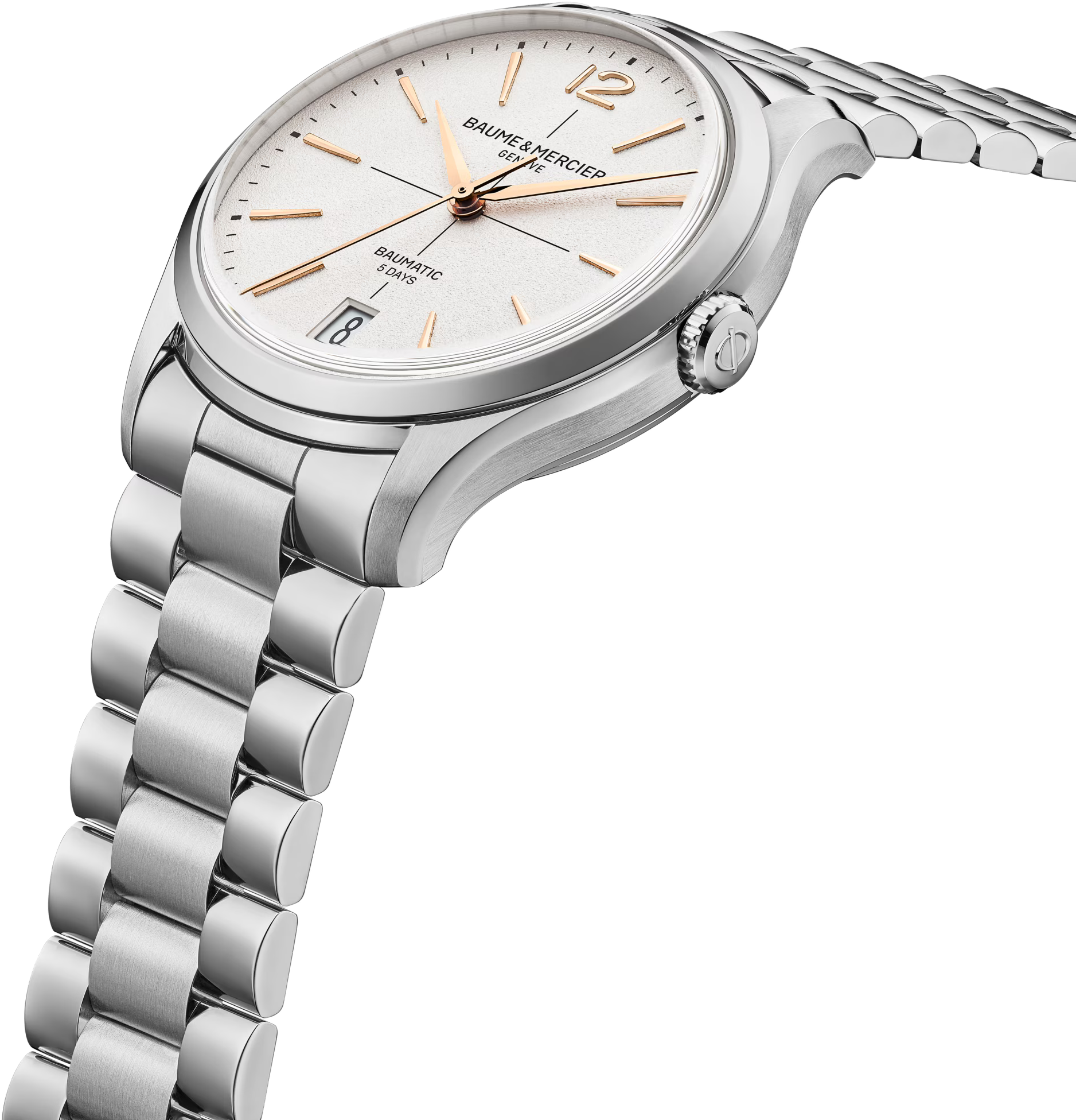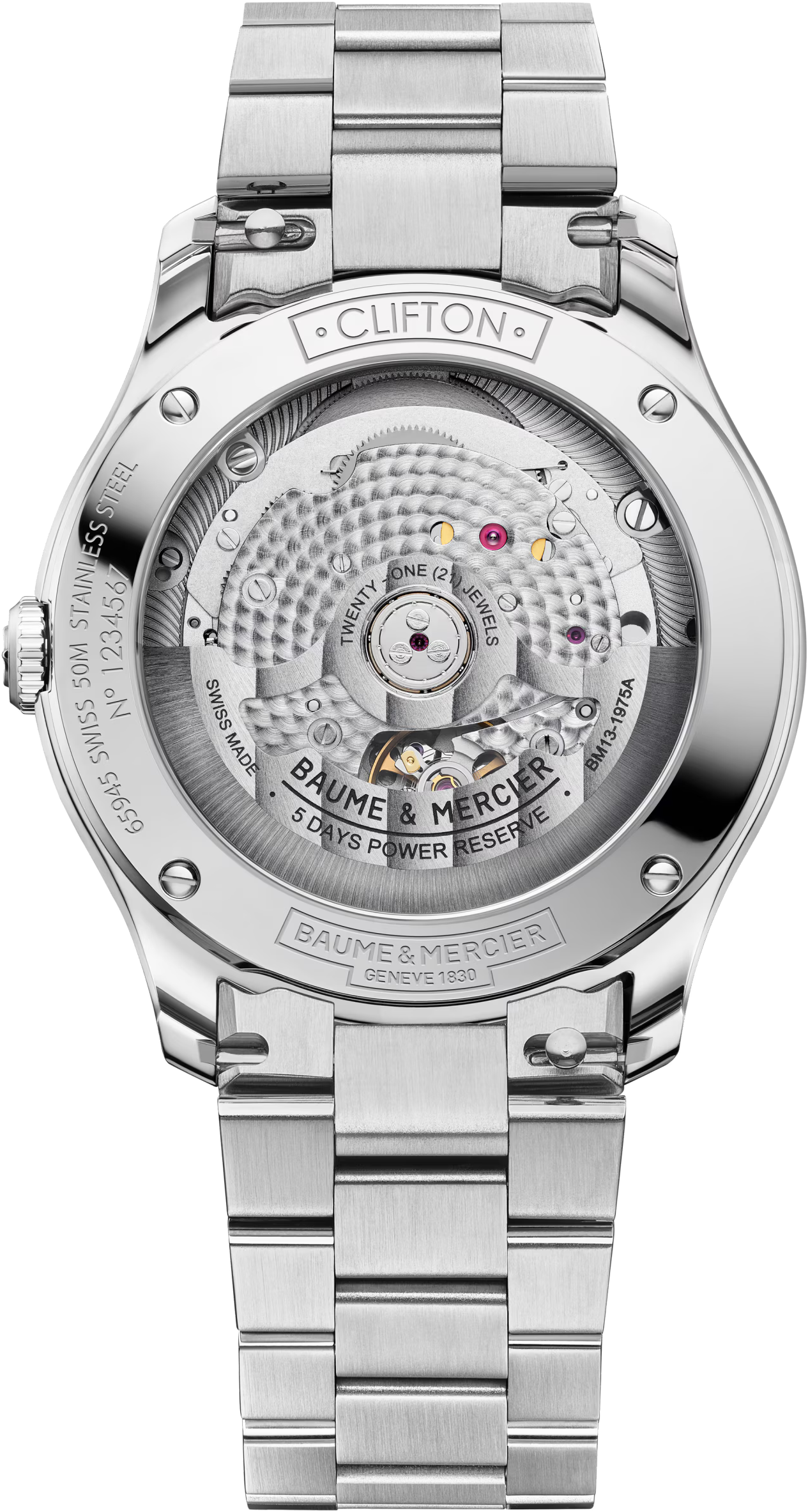 Funkce:Čas, datum, strojek vlastní výroby Swiss Baume & Mercier Baumatic BM13 -1975A = rezerva chodu 120 hodin (5 dní), 21 kamenů, 28.800 polokmitů za hodinu = přesnost chodu 2 - 4 vteřiny denně, krokové ústrojí je kompletně vyrobené z křemíku (minimální tření = vysoká přesnost chodu), celý strojek je chráněn proti magnetismu speciálním anti-magnetickým kroužkem Chrome Core (hodinky odolávají různě silným magnetickým polím, které jsou dnes prakticky všudypřítomné a tím jsou eliminovány případné diference, tzn. další přednost pro ještě vyšší přesnost hodinek), automatický nátah (hodinky se natahují pohybem ruky) + ruční nátah (hodinky lze natáhnout/dotáhnout dle potřeby i ručně korunkou), průhledné zadní víčko pro náhled na strojek, rychlá výměna pásků a náramků samotným uživatelem, abnormálně tenké hodinky na rezervu chodu 120 hodin. Firma Baume et Mercier Vám vyrobí na zakázku kožený řemínek ke každým hodinkám své produkce, který si vyberete z palety jejich vzorníku (modrý, modrý s bílým prošitím, modrý s modrým prošitím, modrý s béžovým prošitím a takto i další barvy kůže - viz.obrázek ve fotkách hodinek). Baume et Mercier je natolik prestižní firma, že opraví každé hodinky, které vyrobili od počátku svého vzniku, tedy od roku 1830. Baume & Mercier si vyrábí svoje vlastní hodinářské oleje, které vynikají svojí dlouhou životností - díky tomu je prodloužena doba pravidelného celkového servisu(vyčištění a namazání strojku) na 10 let.