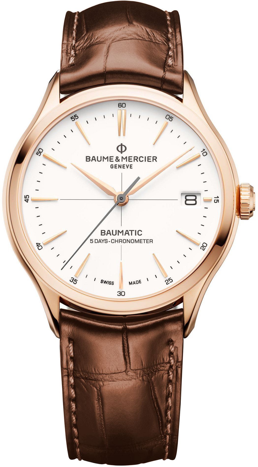 Funkce:Čas, datum, strojek vlastní výroby Baume & Mercier BM12-1975A - rezerva chodu 120 hodin (5 dní), 21 kamenů, 28.800 polokmitů za hodinu, COSC - certifikát přesnosti +6/-4 vteřiny denně (běžná praxe +2 vteřiny denně), Twinspir (dvojitý křemíkový antimagnetický vlásek) - ideální pro termokompenzaci (tzn. minimální efekt rozdílů teplot působících na vlásek) a výrazně odolný vůči nárazům, krokové ústrojí je též kompletně vyrobené z křemíku (minimální tření = vysoká přesnost chodu), průhledné zadní víčko pro náhled na strojek.. Firma Baume et Mercier Vám vyrobí na zakázku kožený řemínek ke každým hodinkám své produkce, který si vyberete z palety jejich vzorníku (modrý, modrý s bílým prošitím, modrý s modrým prošitím, modrý s béžovým prošitím a takto i další barvy kůže - viz.obrázek ve fotkách hodinek). Baume et Mercier je natolik prestižní firma, že opraví každé hodinky, které vyrobili od počátku svého vzniku, tedy od roku 1830. Baume & Mercier si vyrábí svoje vlastní hodinářské oleje, které vynikají svojí dlouhou životností - díky tomu je prodloužena doba pravidelného celkového servisu(vyčištění a namazání strojku) na 10 let.