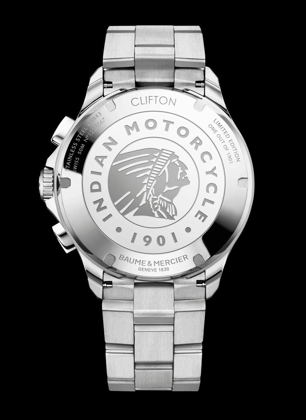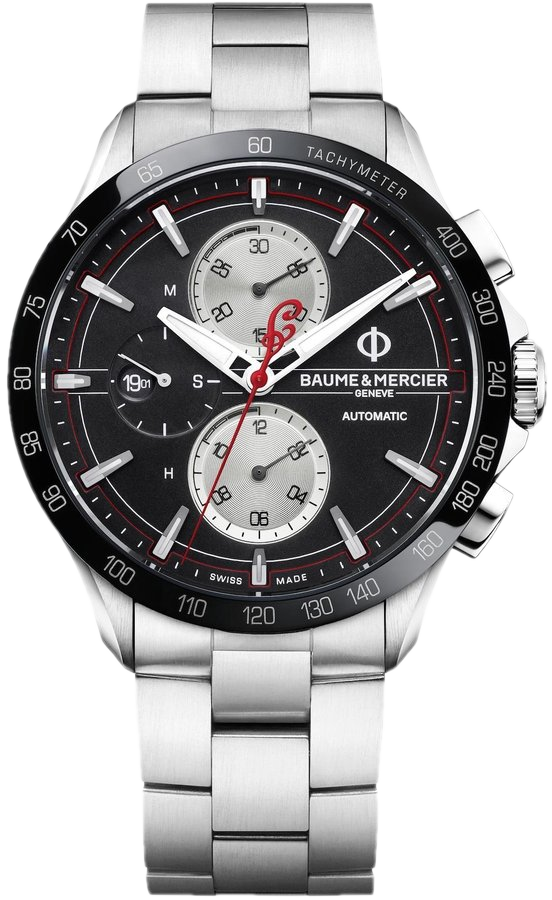 Funkce:Čas, datum, chronograf = stopky, tachymetr = km/h, strojek swiss ETA 7750 Valjoux (25 kamenů), rezerva chodu 48 hodin, kmity setrvačky 28.800/h = přesnost chodu 3 - 4 vteřiny denně, průhled na strojek, průhledné zadní víčko pro náhled na strojek. Firma Baume et Mercier Vám vyrobí na zakázku kožený řemínek ke každým hodinkám své produkce, který si vyberete z palety jejich vzorníku (modrý, modrý s bílým prošitím, modrý s modrým prošitím, modrý s béžovým prošitím a takto i další barvy kůže - viz.obrázek ve fotkách hodinek). Baume et Mercier je natolik prestižní firma, že opraví každé hodinky, které vyrobili od počátku svého vzniku, tedy od roku 1830. Baume & Mercier si vyrábí svoje vlastní hodinářské oleje, které vynikají svojí dlouhou životností - díky tomu je prodloužena doba pravidelného celkového servisu(vyčištění a namazání strojku) na 10 let.