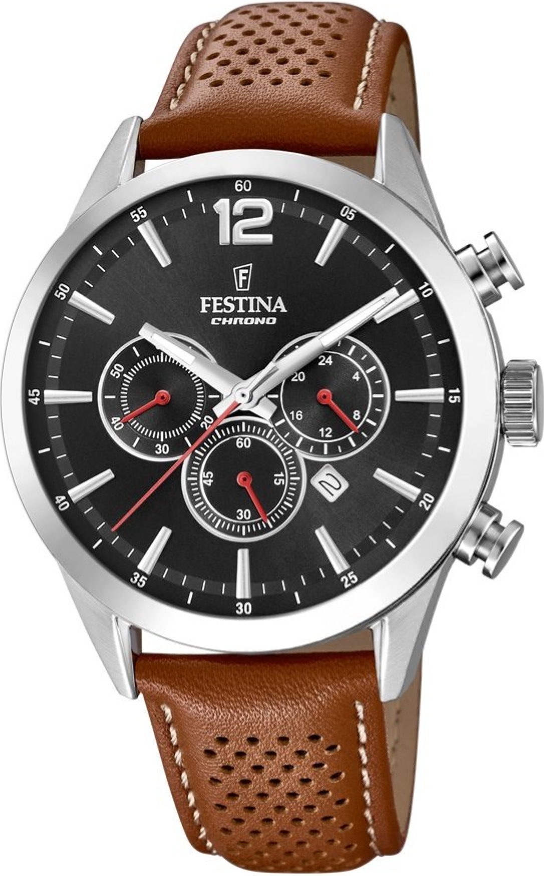 Funkce:Čas, datum, chronograf = stopky, luminiscenční ručičky, strojek japan Quartz - přesnost chodu 0 - 0,4 vteřiny denně