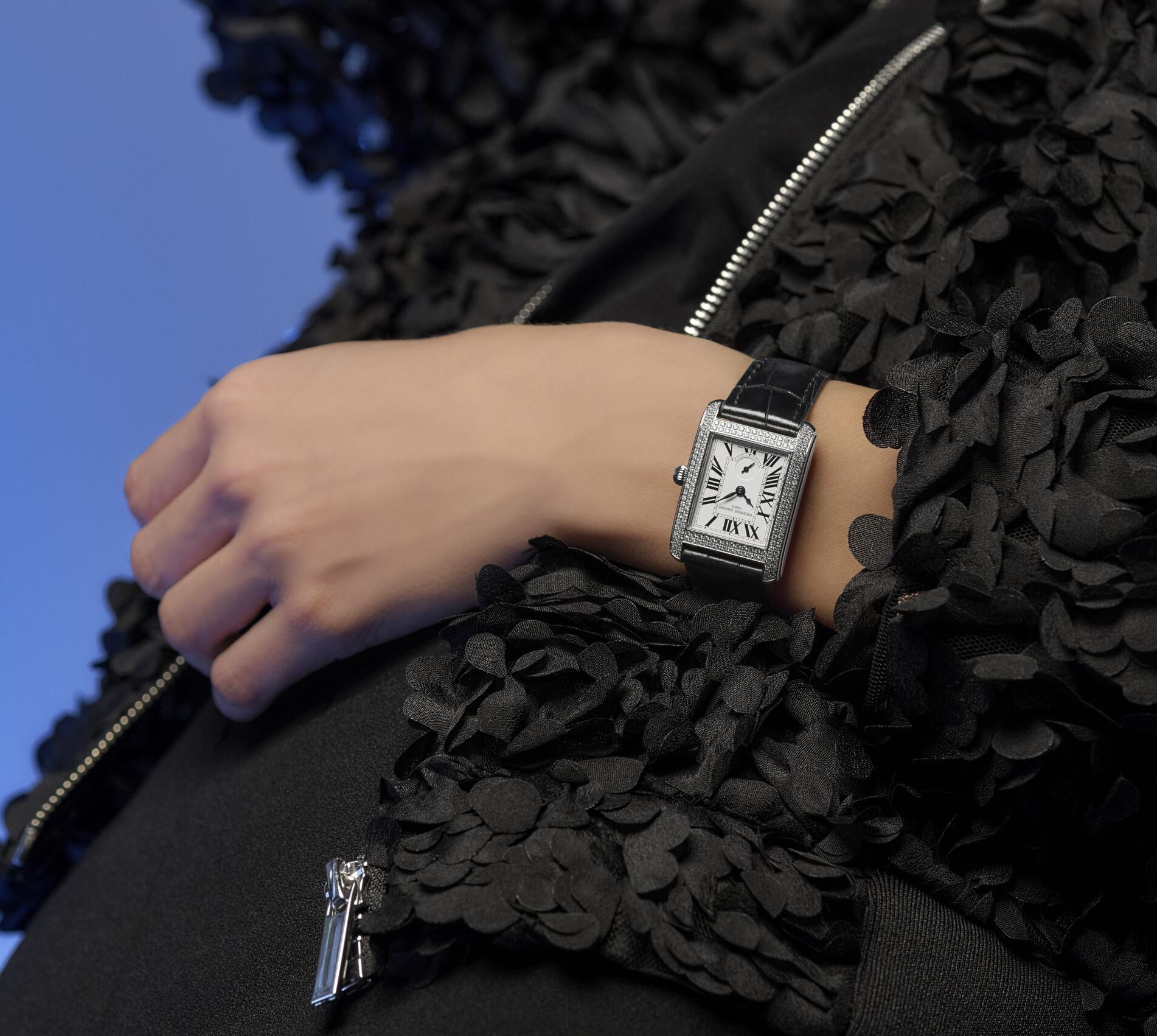 Dámské hodinky jsou obecně menší než pánské, opět záleží na vkusu majitelky, dá-li přednost praktické čitelnosti a dnes už i modernosti v podobě hodinek větších nebo klasické jemnosti a eleganci v podobě hodinek malých. Povětšinou, jedná-li se o hodinky sportovního charakteru, volí se hodinky větší a jsou-li hodinky určené do společnosti, padne volba na hodinky menší šperkové, mnohdy doplněné zlacením. Zlacení ještě více posune hodinky do elegance a je obzvlášť vhodné pro ženy, které nosí zlaté šperky, jelikož poté hodinky působí kompletně se zlatými šperky a celkově toto působí jako sada. I zde máme, stejně jako u pánských, design hodinek ovlivněn typem pásku či náramku, platí tedy to, co je napsáno výše u hodinek pánských. U dámských hodinek jsou ale ve větší míře zastoupené náramky kovové celozlacené nebo s pozlacenými díly, protože ženy se obecně zdobí raději než muži a hodinky takto zkrášlené mnohdy doplní jejich image.