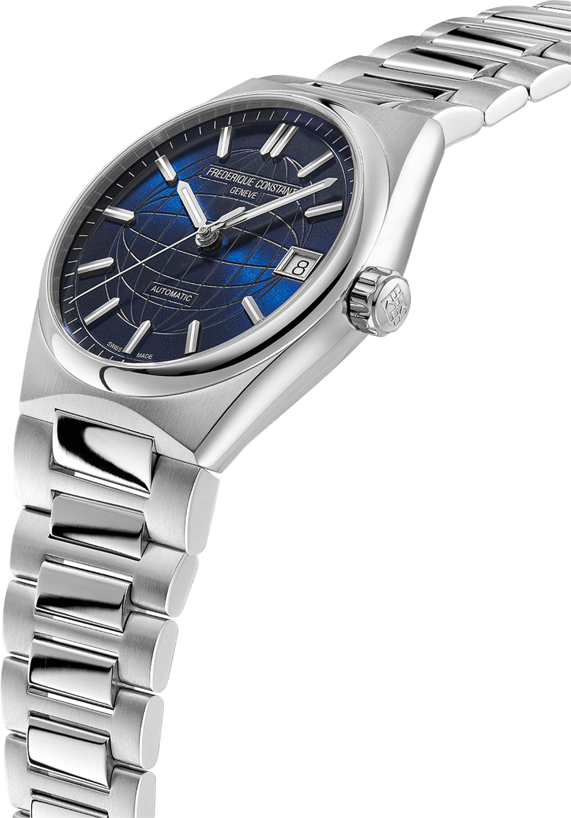 Highlife Ladies Automatic s pouzdrem o průměru 34 mm jsou k dispozici v zářivé a moderní sportovně elegantní verzi díky novému námořnickému modrému ciferníku, nejvíce trendy barvě v současném jemném hodinářství. Jeho automatický pohyb nabízí 38hodinovou rezervu chodu s plným zobrazením hodin, minut, sekund a data. Jeho leštěné ocelové pouzdro se saténovou povrchovou úpravou se rozprostírá v pružný a odolný ocelový náramek, doplněný druhým odpovídajícím tmavě modrým gumovým páskem, který lze vyměnit dvěma cvaknutími bez použití nástrojů, aby vyhovoval jakékoli touze a oblečení.