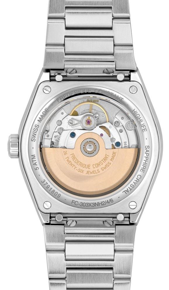 Funkce:Čas, datum, strojek Swiss FC-303 = rezerva chodu 38 hodin, 28.800 polokmitů setrvačky za hodinu = přesnost chodu 0,3 vteřiny denně, 26 kamenových uložení, automatický nátah (pohybem ruky) + ruční nátah (hodinky lze natáhnout i ručně korunkou), průhledné víčko pouzdra pro náhled na strojek