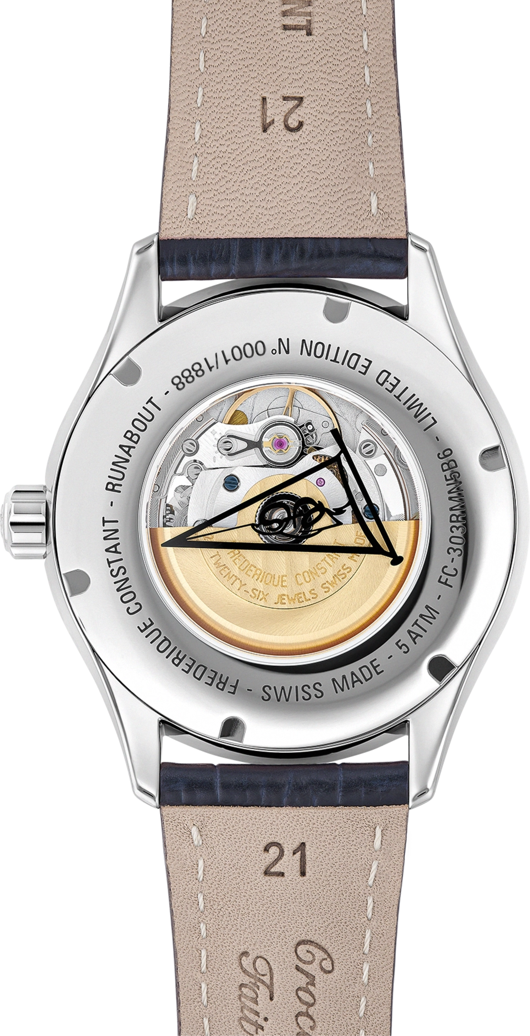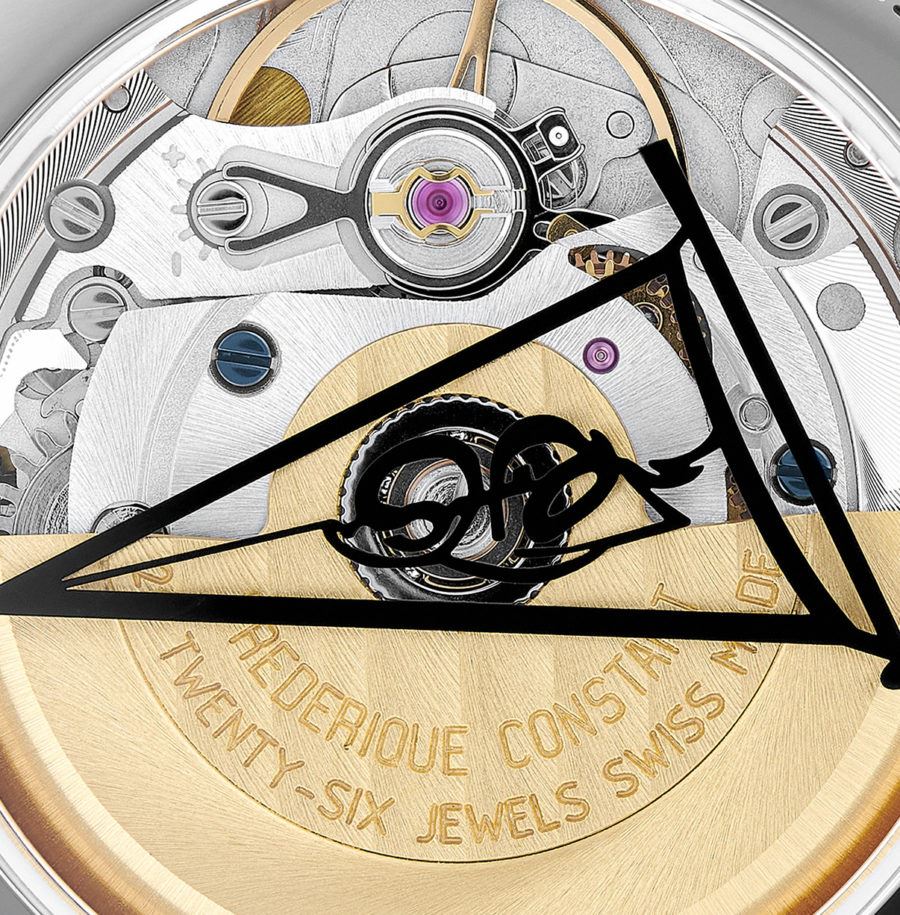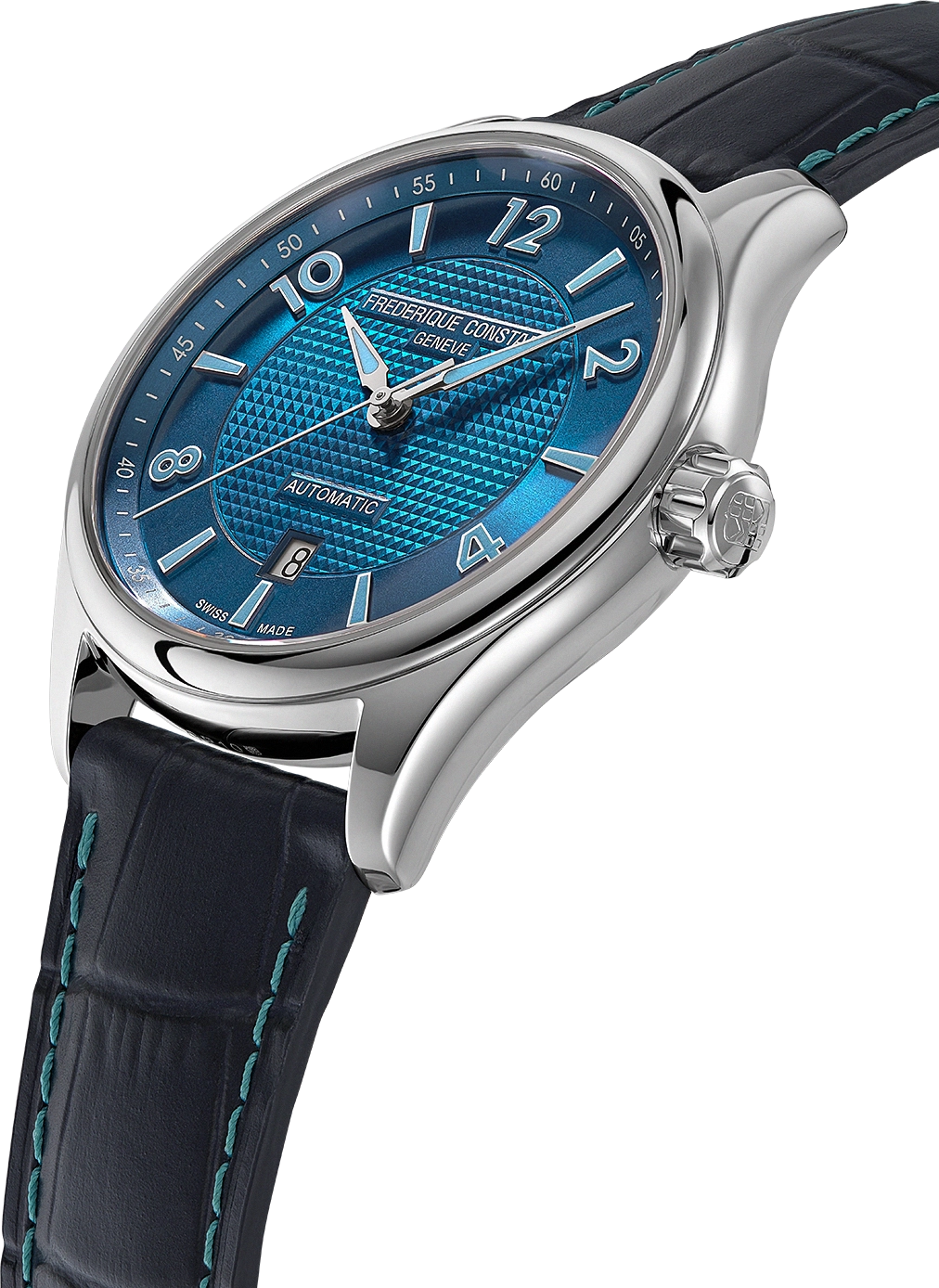Funkce:Čas, datum, strojek Swiss Frederique Cosnatant FC-303 (26 kamenových uložení) = rezerva chodu 38 hodin, automatický nátah (pohybem ruky) + ruční nátah (hodinky lze natáhnout i korunkou), číselník zdobí elegantní rastr, průhledné zadní víčko pro náhled na strojek