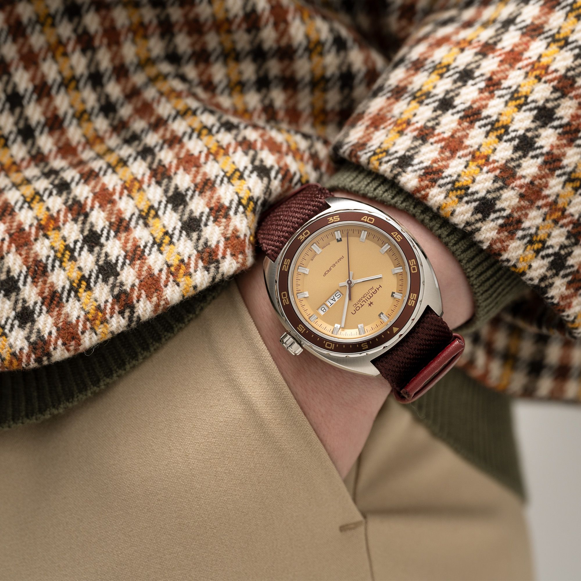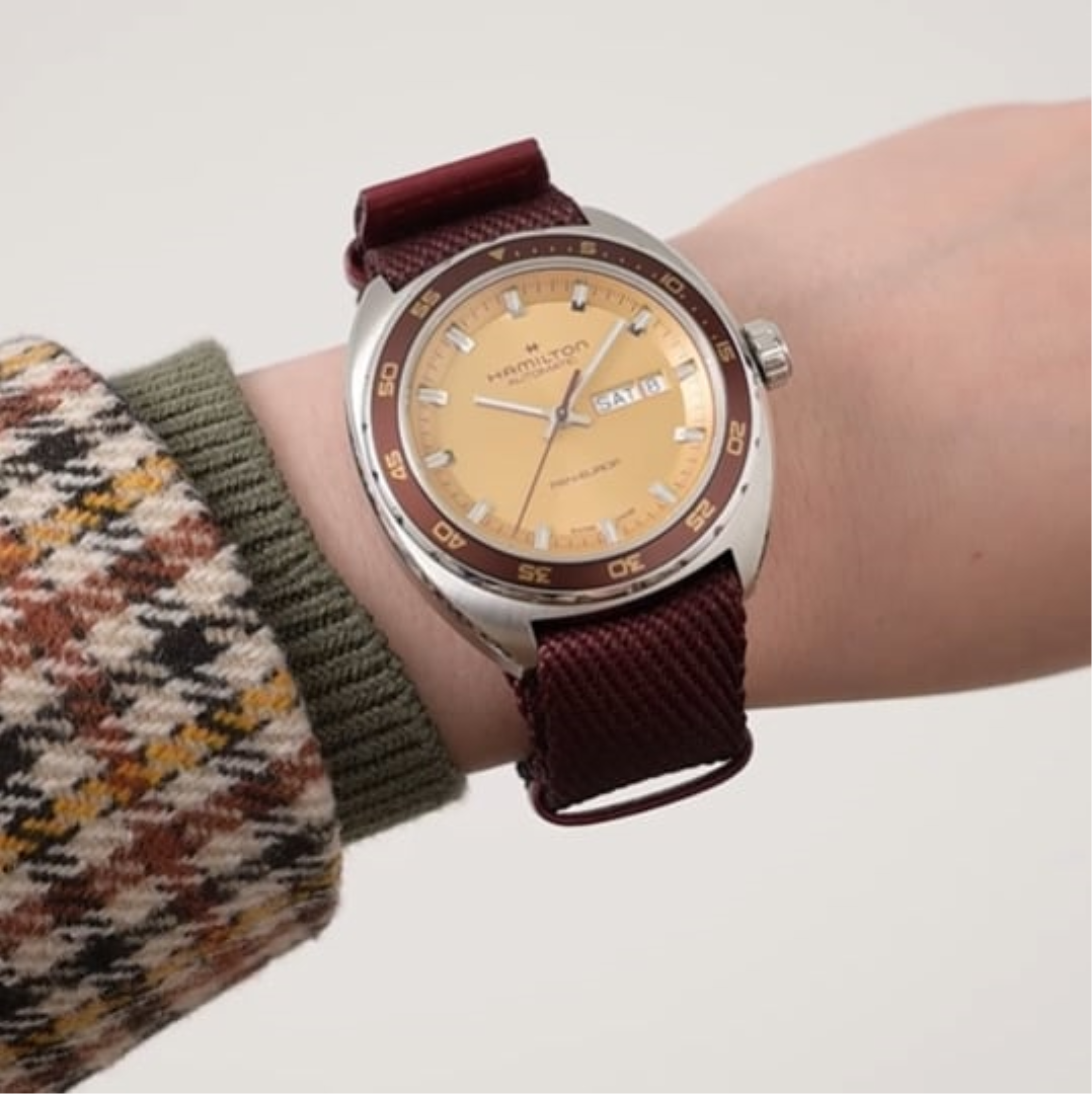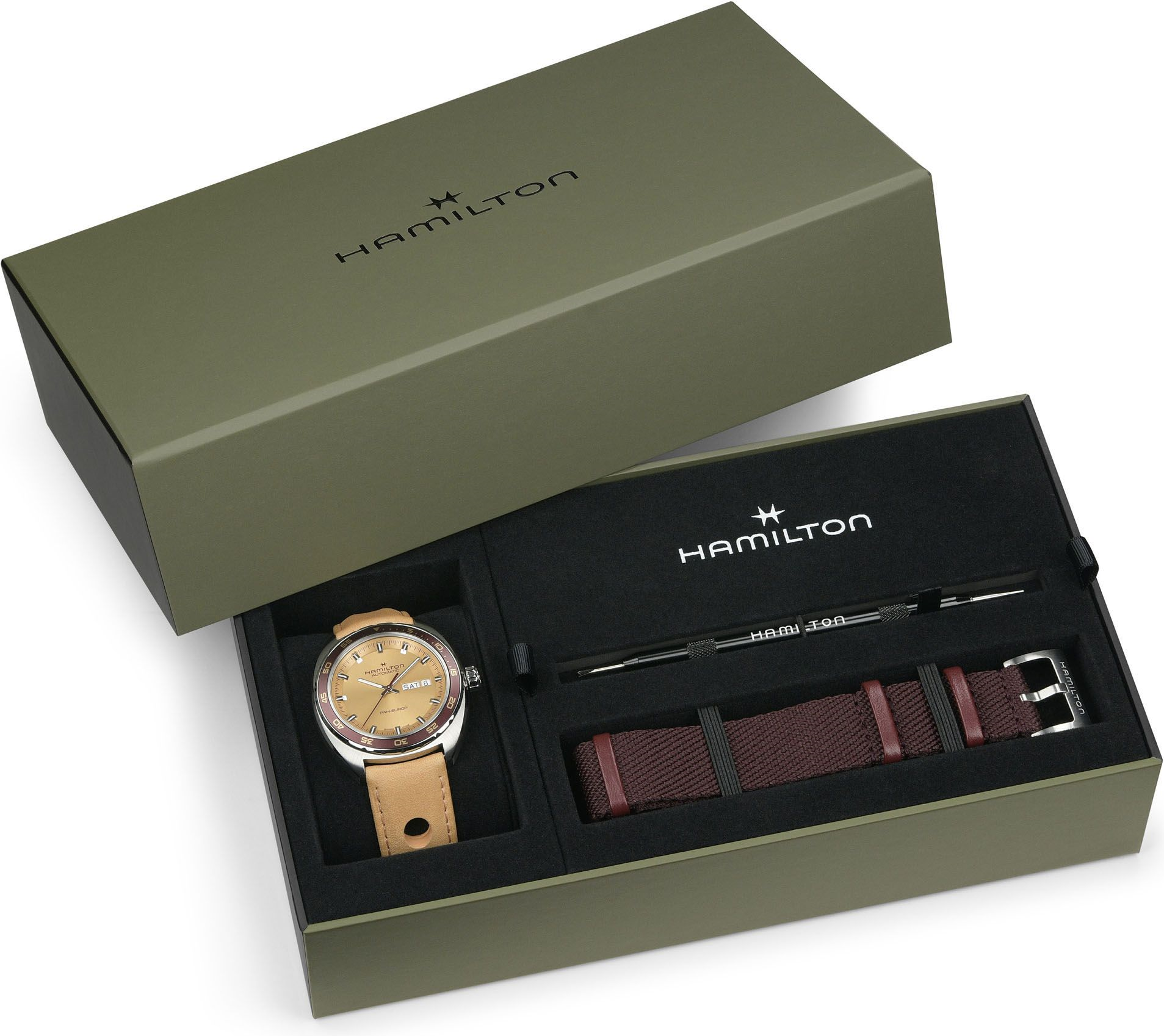 Funkce:Čas, datum, den v týdnu, režim 12/24, strojek swiss kalibr H-30 (krokové ústrojí ocel/kámen) - vyráběn firmou Eta exklusivně pro Hamilton (25 kamenů), rezerva chodu 80 hodin, polokmity setrvačky 21.600/h = přesnost chodu 3 - 5 vteřin denně - nižší kmity setrvačky jsou vyladěny jemnou regulací na maximální přesnost strojku, úprava rotoru samonátahu dle vzoru Hamilton - rotor zaopatřen speciálními výřezy na tlumení případných nárazů hodinek během nošení, průhledné zadní víčko pro náhled na strojek, automatický + ruční nátah, jednosměrně otočná luneta