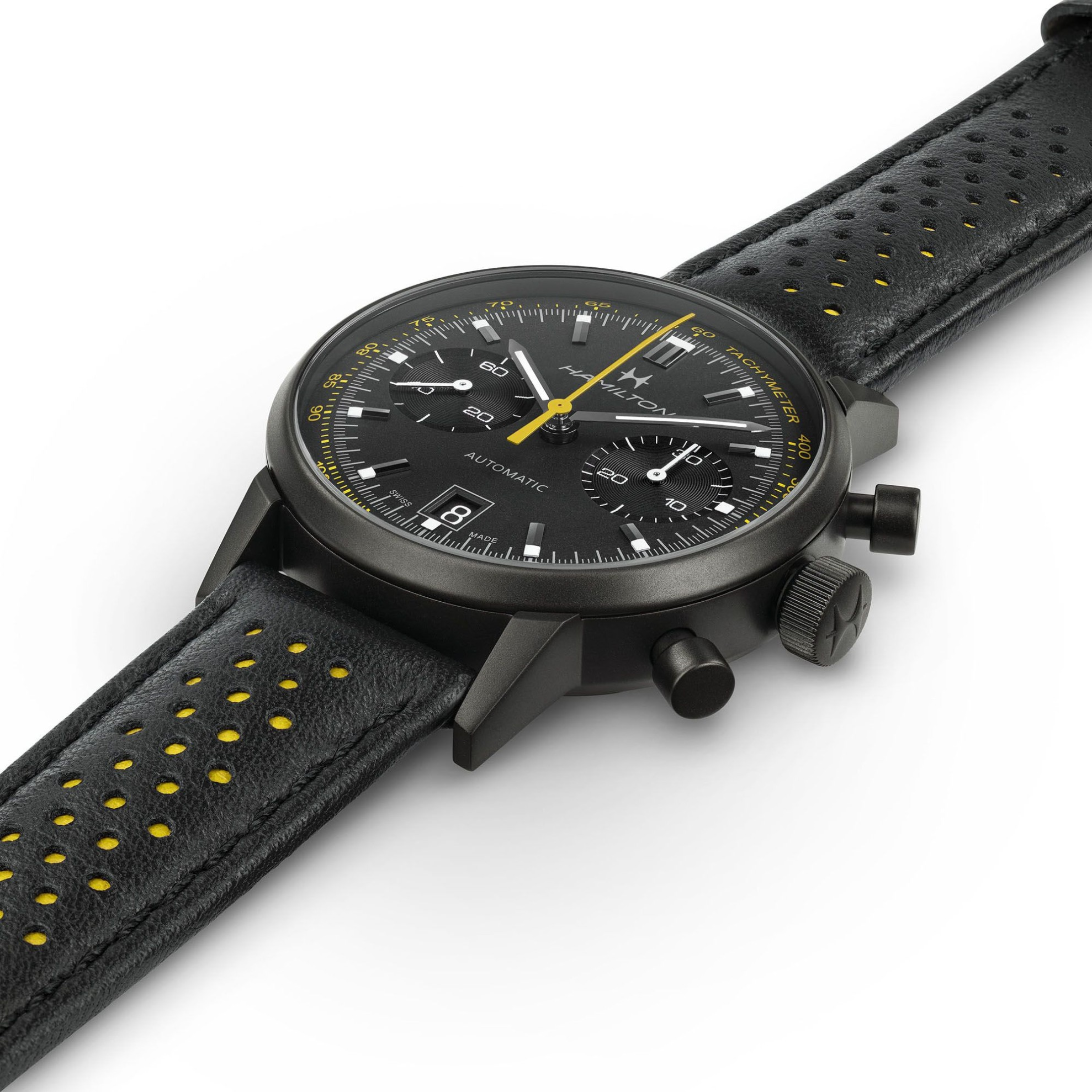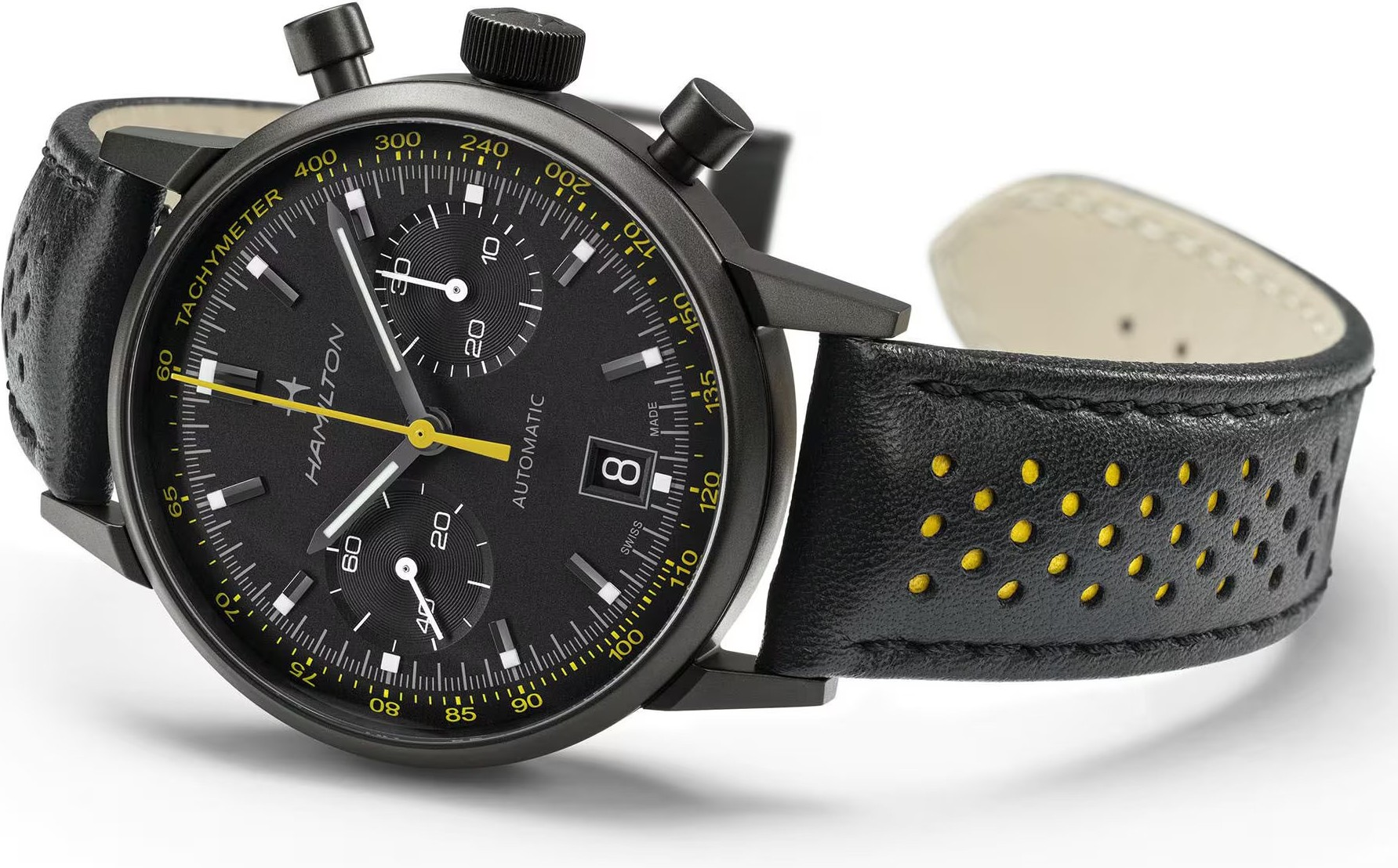 Funkce:Čas, datum, chronograf = stopky, tachymeter, strojek Hamilton swiss H-31 (základ Eta Valjoux 7753 - 27 kamenů), rezerva chodu 60 hodin, polokmity setrvačky 28.800 za hodinu = přesnost chodu 2 - 4 vteřiny denně, křemíkový vlásek - téměř antimagnetický s bezkonkurenční stabilitou pro přesnost chodu strojku a větší stabilitou proti nárazům, automatický + ruční nátah, šroubovací vodotěsná korunka, luminiscenční ručičky a indexy