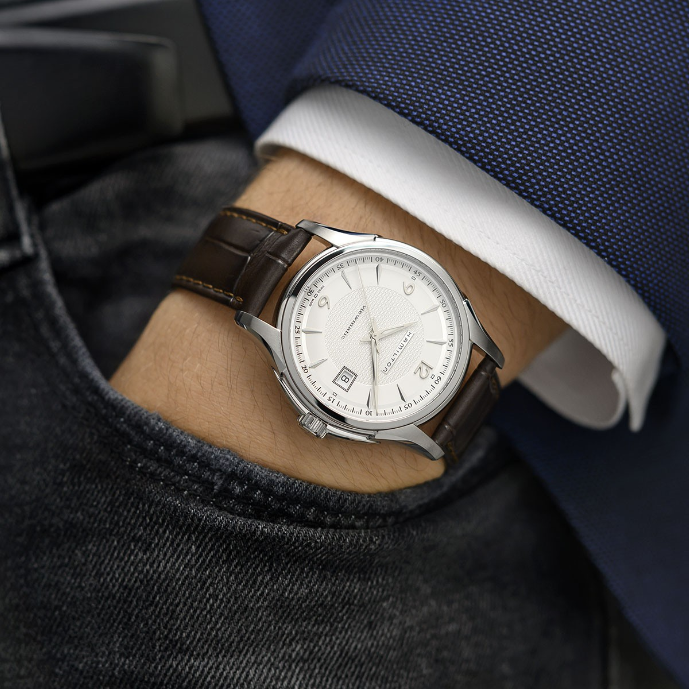 Funkce:Čas, datum, strojek swiss kalibr H-10 - vyráběn firmou Eta exklusivně pro Hamilton = 25 kamenů (krokové ústrojí ocel/kámen), rezerva chodu 80 hodin, polokmity setrvačky 21.600/h = přesnost chodu 3 - 5 vteřin denně (nižší polokmity setrvačky jsou vyladěny jemnou regulací pro maximální přesnost strojku na věnci setrvačky), úprava rotoru samonátahu dle vzoru Hamilton - rotor zaopatřen speciálními výřezy na tlumení případných nárazů, automatický + ruční nátah, průhledné zadní víčko pro náhled na strojek