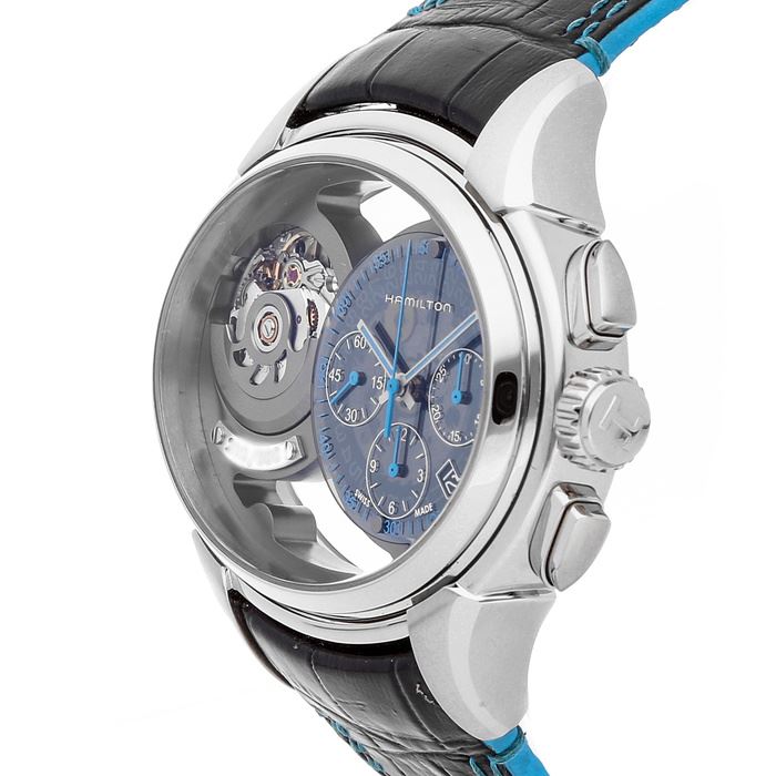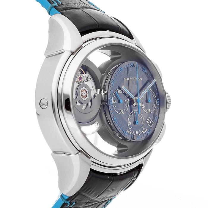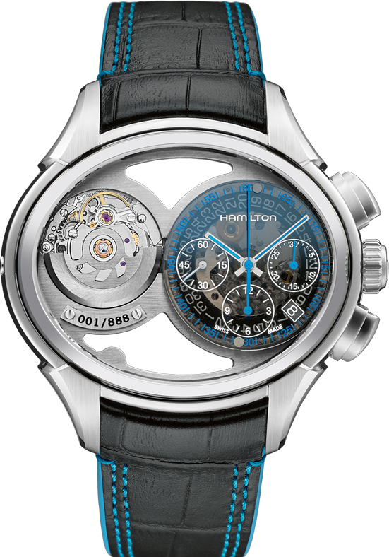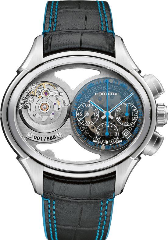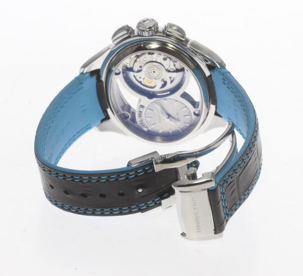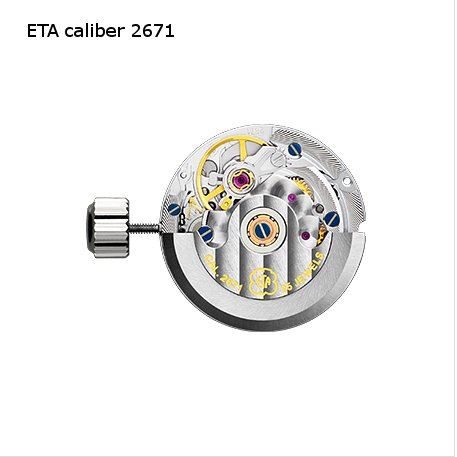 Funkce:Čas, datum, chronograf = stopky, duální čas, otočný průhledný číselník, strojek swiss Cal. 2094 + ETA 2671 (25 kamenů) - rezerva chodu 38 hodin, kmity setrvačky 28.800/h = diference 3 - 4 vteřiny denně, svítící ručky