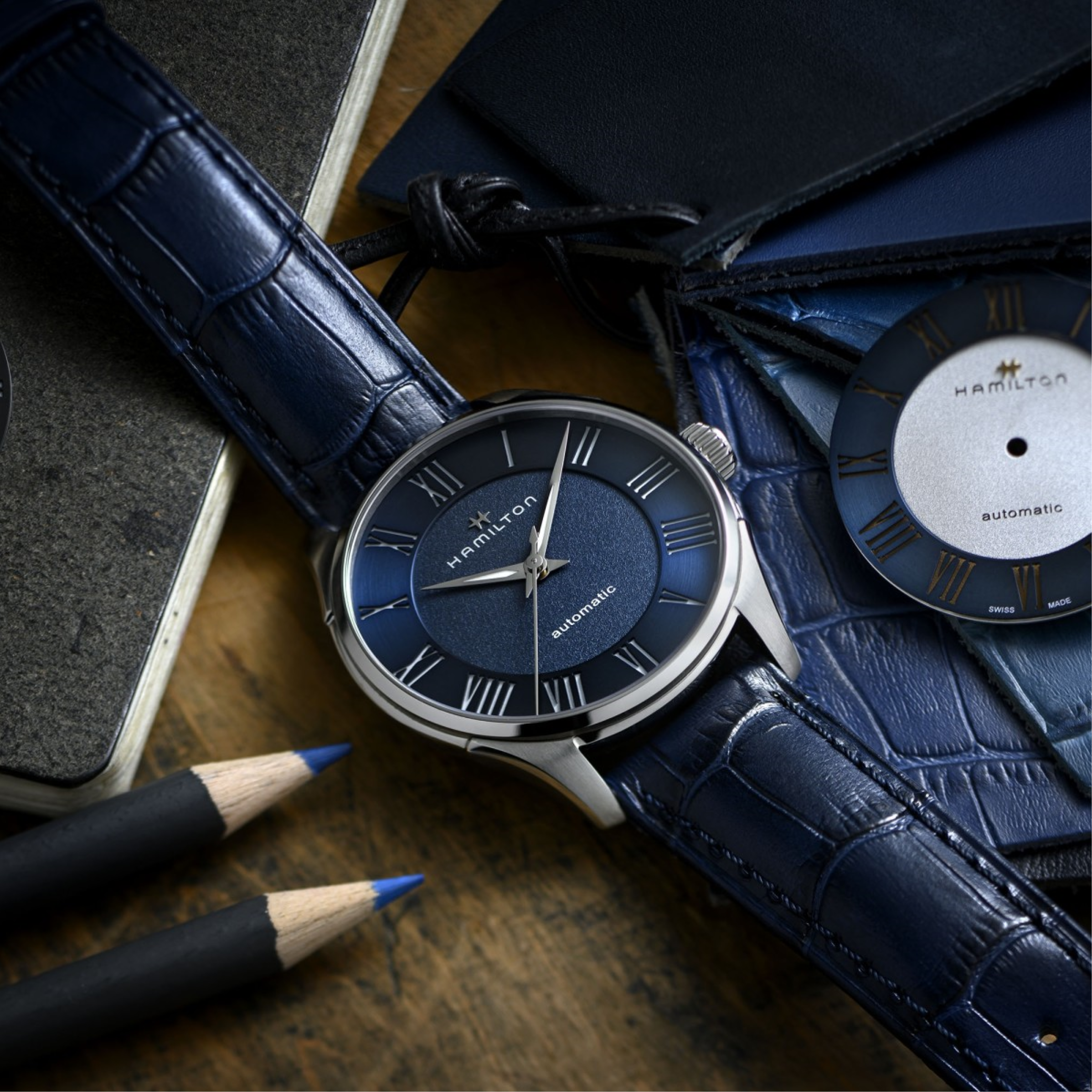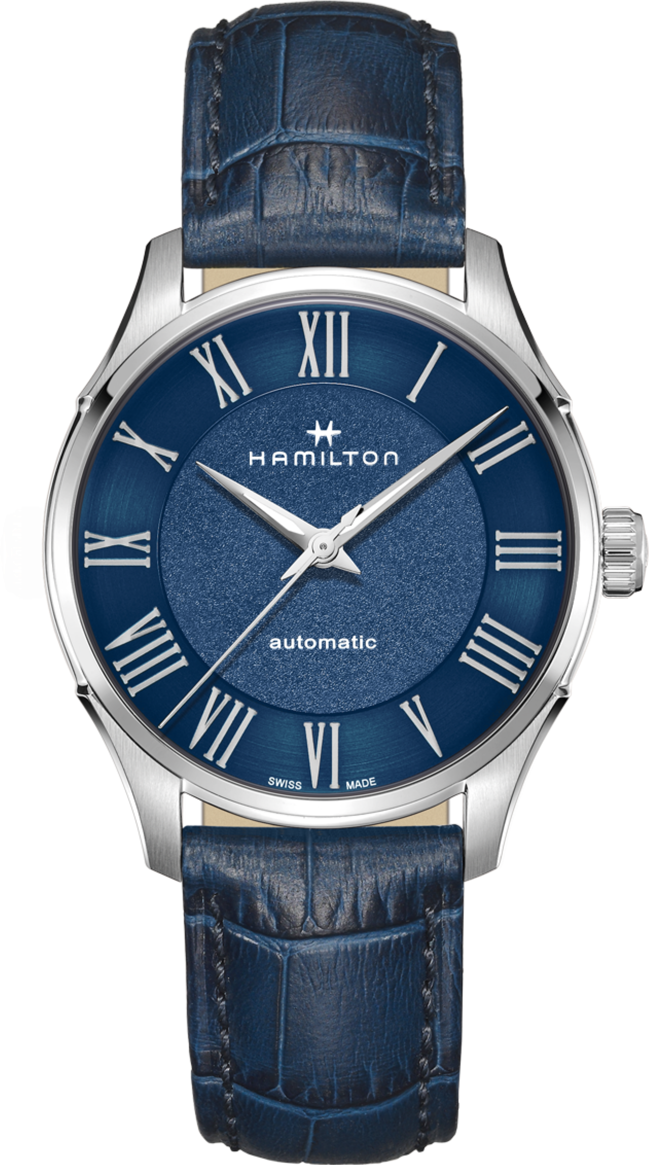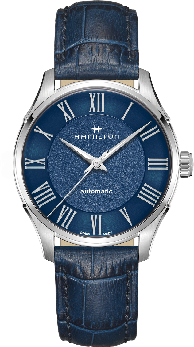 Funkce:Čas, strojek swiss kalibr H-10 - vyráběn firmou Eta exklusivně pro Hamilton = 25 kamenů (krokové ústrojí ocel/kámen), rezerva chodu 80 hodin, polokmity setrvačky 21.600/h = přesnost chodu 3 - 5 vteřin denně (nižší polokmity setrvačky jsou vyladěny jemnou regulací pro maximální přesnost strojku na věnci setrvačky), úprava rotoru samonátahu dle vzoru Hamilton - rotor zaopatřen speciálními výřezy na tlumení případných nárazů hodinek během nošení, automatický nátah (pohyb ruky) + ruční nátah (hodinky lze také natahovat i korunkou), svítící ručičky (luminiscence)
