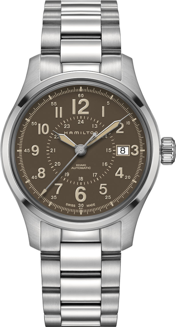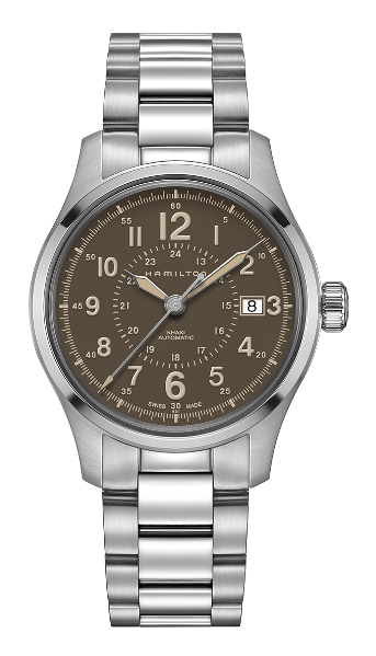 Funkce:Čas, datum, strojek swiss kalibr H-10 - vyráběn firmou Eta exklusivně pro Hamilton = 25 kamenů (krokové ústrojí ocel/kámen), rezerva chodu 80 hodin, polokmity setrvačky 21.600/h = přesnost chodu 3 - 5 vteřin denně (nižší polokmity setrvačky jsou vyladěny jemnou regulací pro maximální přesnost strojku na věnci setrvačky), úprava rotoru samonátahu dle vzoru Hamilton - rotor zaopatřen speciálními výřezy na tlumení případných nárazů hodinek během nošení, automatický + ruční nátah, průhledné zadní víčko pro náhled na strojek, svítící ručičky a indexy, zapínání náramku - překlapávací spona (pevné praktické zapínání)