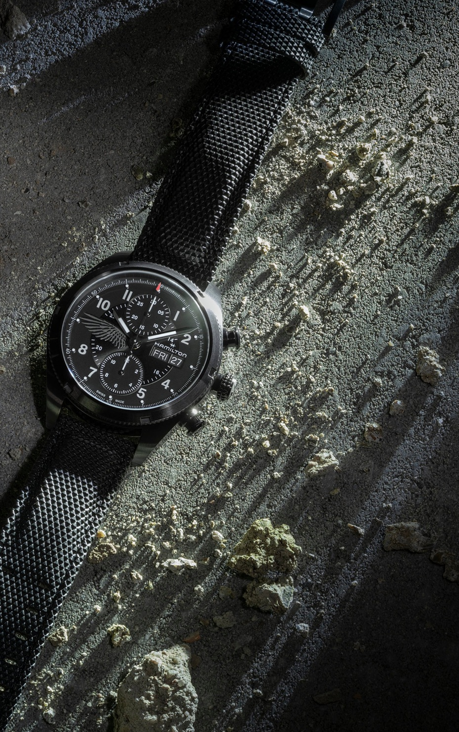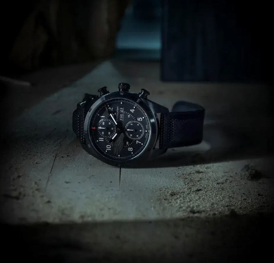 Funkce:Čas, datum, den v týdnu, chronograf = stopky, strojek Hamilton swiss H-21 (základ Eta Valjoux 7750 - 26 kamenů), rezerva chodu 60 hodin, polokmity setrvačky 28.800 za hodinu = přesnost chodu 2 - 4 vteřiny denně, křemíkový vlásek - téměř antimagnetický s bezkonkurenční stabilitou pro přesnost chodu strojku a větší stabilitou proti nárazům, automatický + ruční nátah, průhledné zadní víčko pro náhled na strojek, zapínání pásku - klasická spona (pevné bezpečné zapínání), svítící ručičky, šroubovací vodotěsná korunka