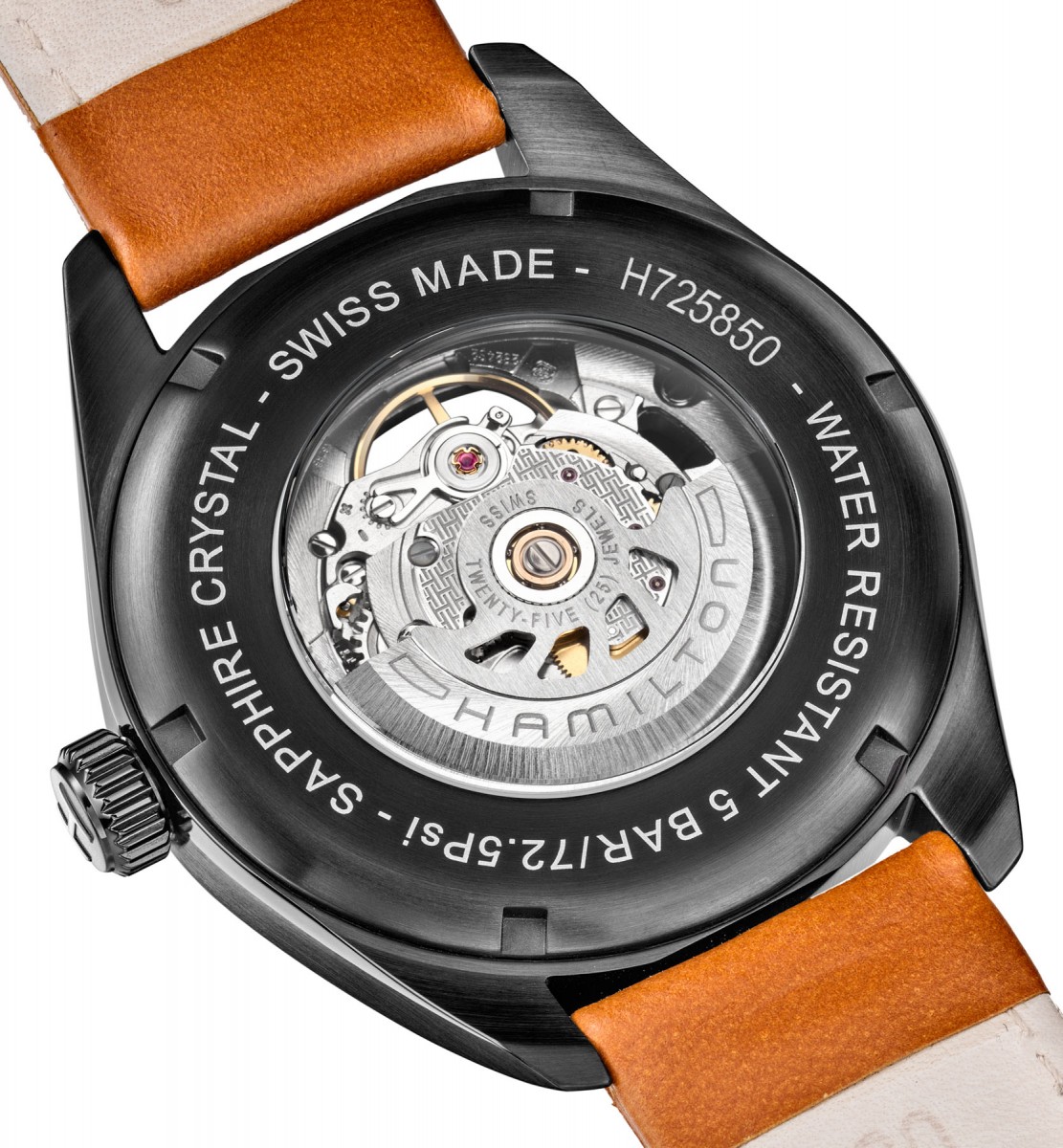 Funkce:Čas, skeletonový číselník, strojek swiss kalibr H-20-S - vyráběn firmou ETA exkluzivně pro Hamilton (25 kamenů) k modelům se skeletonem - kmity setrvačky 28.800/h = přesnost chodu 2 - 4 vteřiny denně, rezerva chodu 40 hodin, průhledné zadní víčko pro náhled na strojek, svítící ručky a indexy, automatický + ruční nátah